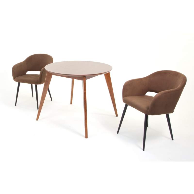 Комплект из деревянного стола Сканди на каркасе из натурального дерева и 2 кресла Пичч отлично подойдет к интерьеру, выдержанному в скандинавском стиле. Данный комплект станет центральным элементом в гостиной, столовой зоне, на кухне, позволив создать уютное обеденное место, где смогут собираться члены дружной семьи и их гости.У модели круглая форма столешницы. Такое решение исключит риск сколов и обеспечит безопасность, в том числе, детям.Комплект выполнен в красивом цвете - орех. Сочетание изысканного дизайна и высокого качества исполнения - главная особенность комплекта.Столешница выполнена из материалов с великолепными эксплуатационными свойствами - МДФ (Материал создается на основе натуральной древесины. Практичен, надежен, имеет однородную гладкую структуру), шпон.Мебель проста в уходе - для поддержания первозданного вида достаточно использовать простую чуть влажную салфетку по мере необходимости.Состав комплекта:- стол F004105W00- стулья Z212902B04