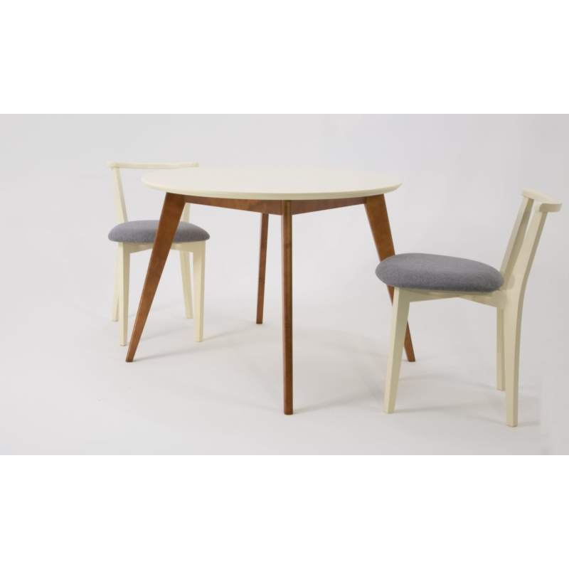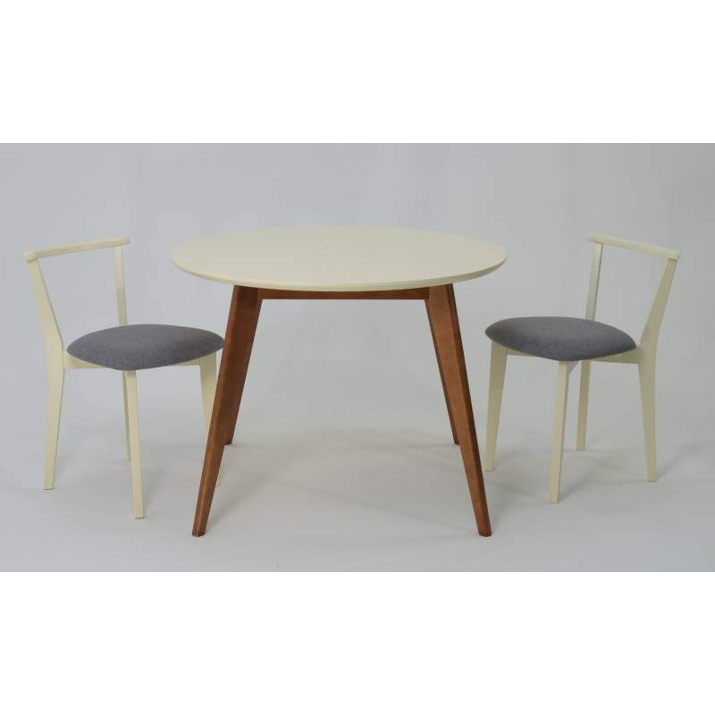 Комплект из деревянного стола Сканди на каркасе из натурального дерева и 2 стула Франк отлично подойдет к интерьеру, выдержанному в скандинавском стиле. Данный комплект станет центральным элементом в гостиной, столовой зоне, на кухне, позволив создать уютное обеденное место, где смогут собираться члены дружной семьи и их гости.У модели круглая форма столешницы. Такое решение исключит риск сколов и обеспечит безопасность, в том числе, детям.Комплект выполнен в красивой комбинации цветов - орех, слоновая кость. Сочетание изысканного дизайна и высокого качества исполнения - главная особенность комплекта.Столешница выполнена из материалов с великолепными эксплуатационными свойствами - МДФ (Материал создается на основе натуральной древесины. Практичен, надежен, имеет однородную гладкую структуру), шпон.Мебель проста в уходе - для поддержания первозданного вида достаточно использовать простую чуть влажную салфетку по мере необходимости.Состав комплекта:- стол F004101WUS- стулья R101709S01
