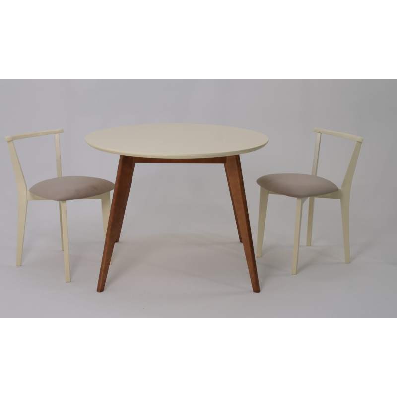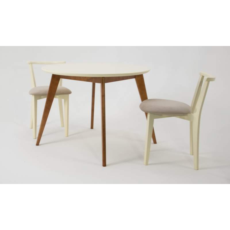 Комплект из деревянного стола Сканди на каркасе из натурального дерева и 2 стула Франк отлично подойдет к интерьеру, выдержанному в скандинавском стиле. Данный комплект станет центральным элементом в гостиной, столовой зоне, на кухне, позволив создать уютное обеденное место, где смогут собираться члены дружной семьи и их гости.У модели круглая форма столешницы. Такое решение исключит риск сколов и обеспечит безопасность, в том числе, детям.Комплект выполнен в красивой комбинации цветов - орех, слоновая кость. Сочетание изысканного дизайна и высокого качества исполнения - главная особенность комплекта.Столешница выполнена из материалов с великолепными эксплуатационными свойствами - МДФ (Материал создается на основе натуральной древесины. Практичен, надежен, имеет однородную гладкую структуру), шпон.Мебель проста в уходе - для поддержания первозданного вида достаточно использовать простую чуть влажную салфетку по мере необходимости.Состав комплекта:- стол F004101WUS- стулья R101709S02