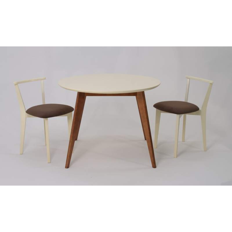 Комплект из деревянного стола Сканди на каркасе из натурального дерева и 2 стула Франк отлично подойдет к интерьеру, выдержанному в скандинавском стиле. Данный комплект станет центральным элементом в гостиной, столовой зоне, на кухне, позволив создать уютное обеденное место, где смогут собираться члены дружной семьи и их гости.У модели круглая форма столешницы. Такое решение исключит риск сколов и обеспечит безопасность, в том числе, детям.Комплект выполнен в красивой комбинации цветов - орех, слоновая кость. Сочетание изысканного дизайна и высокого качества исполнения - главная особенность комплекта.Столешница выполнена из материалов с великолепными эксплуатационными свойствами - МДФ (Материал создается на основе натуральной древесины. Практичен, надежен, имеет однородную гладкую структуру), шпон.Мебель проста в уходе - для поддержания первозданного вида достаточно использовать простую чуть влажную салфетку по мере необходимости.Состав комплекта:- стол F004101WUS- стулья R101709S04