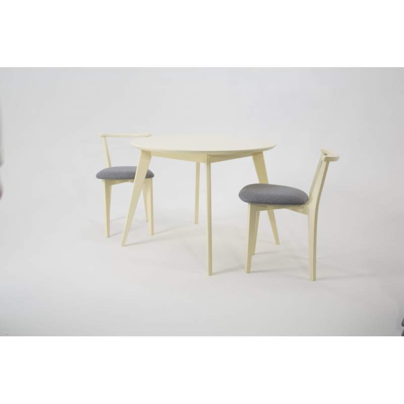 Комплект из деревянного стола Сканди на каркасе из натурального дерева и 2 стула Франк отлично подойдет к интерьеру, выдержанному в скандинавском стиле. Данный комплект станет центральным элементом в гостиной, столовой зоне, на кухне, позволив создать уютное обеденное место, где смогут собираться члены дружной семьи и их гости.У модели круглая форма столешницы. Такое решение исключит риск сколов и обеспечит безопасность, в том числе, детям.Комплект выполнен в красивом цвете - слоновая кость. Сочетание изысканного дизайна и высокого качества исполнения - главная особенность комплекта.Столешница выполнена из материалов с великолепными эксплуатационными свойствами - МДФ (Материал создается на основе натуральной древесины. Практичен, надежен, имеет однородную гладкую структуру), шпон.Мебель проста в уходе - для поддержания первозданного вида достаточно использовать простую чуть влажную салфетку по мере необходимости.Состав комплекта:- стол F004100S00- стулья R101709S01