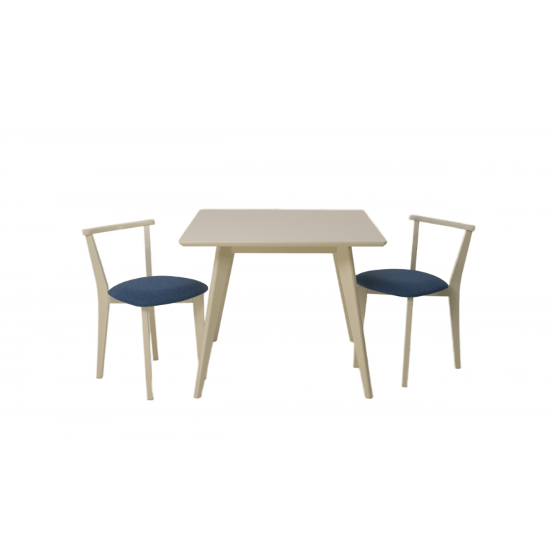 Стол Сканди К 100 слоновая кость со стульями Франк слоновая кость рогожка синий