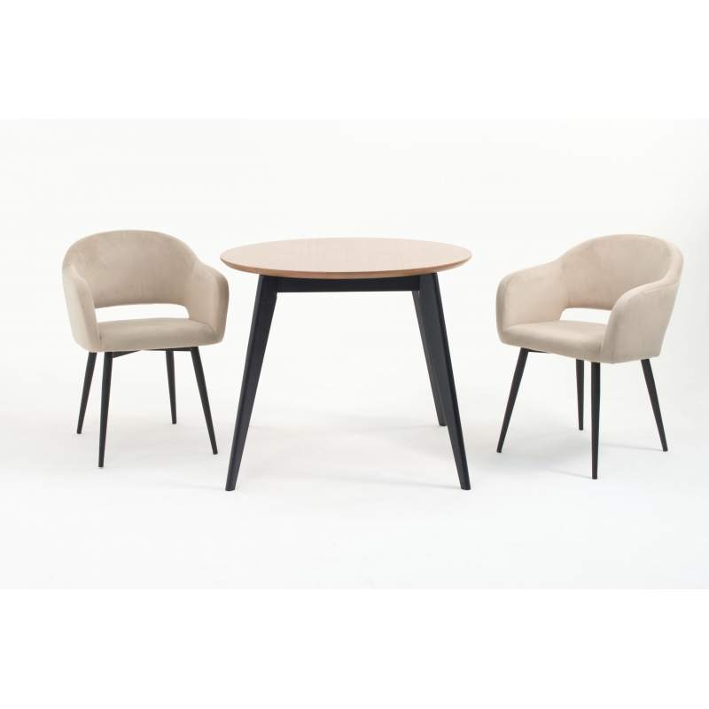 Стол Сканди К 90 черное дерево/натур с креслами Пичч велюр бежевый