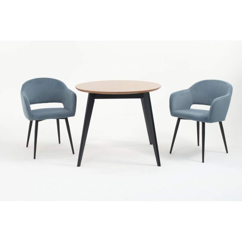 Стол Сканди К 90 черное дерево/натур с креслами Пичч велюр синий