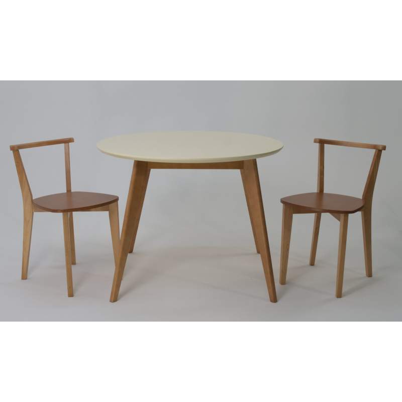 Комплект из деревянного стола Сканди на каркасе из натурального дерева и 2 стула Франк отлично подойдет к интерьеру, выдержанному в скандинавском стиле. Данный комплект станет центральным элементом в гостиной, столовой зоне, на кухне, позволив создать уютное обеденное место, где смогут собираться члены дружной семьи и их гости.У модели круглая форма столешницы. Такое решение исключит риск сколов и обеспечит безопасность, в том числе, детям.Комплект выполнен в красивой комбинации цветов - орех, слоновая кость. Сочетание изысканного дизайна и высокого качества исполнения - главная особенность комплекта.Столешница выполнена из материалов с великолепными эксплуатационными свойствами - МДФ (Материал создается на основе натуральной древесины. Практичен, надежен, имеет однородную гладкую структуру), шпон.Мебель проста в уходе - для поддержания первозданного вида достаточно использовать простую чуть влажную салфетку по мере необходимости.Состав комплекта:- стол F004112NUS- стулья R100701N00