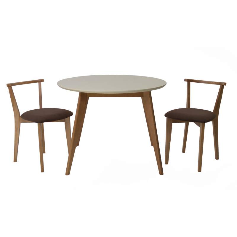 Комплект из деревянного стола Сканди на каркасе из натурального дерева и 2 стула Франк отлично подойдет к интерьеру, выдержанному в скандинавском стиле. Данный комплект станет центральным элементом в гостиной, столовой зоне, на кухне, позволив создать уютное обеденное место, где смогут собираться члены дружной семьи и их гости.У модели круглая форма столешницы. Такое решение исключит риск сколов и обеспечит безопасность, в том числе, детям.Комплект выполнен в красивой комбинации цветов - орех, слоновая кость. Сочетание изысканного дизайна и высокого качества исполнения - главная особенность комплекта.Столешница выполнена из материалов с великолепными эксплуатационными свойствами - МДФ (Материал создается на основе натуральной древесины. Практичен, надежен, имеет однородную гладкую структуру), шпон.Мебель проста в уходе - для поддержания первозданного вида достаточно использовать простую чуть влажную салфетку по мере необходимости.Состав комплекта:- стол F004112NUS- стулья R101707N04