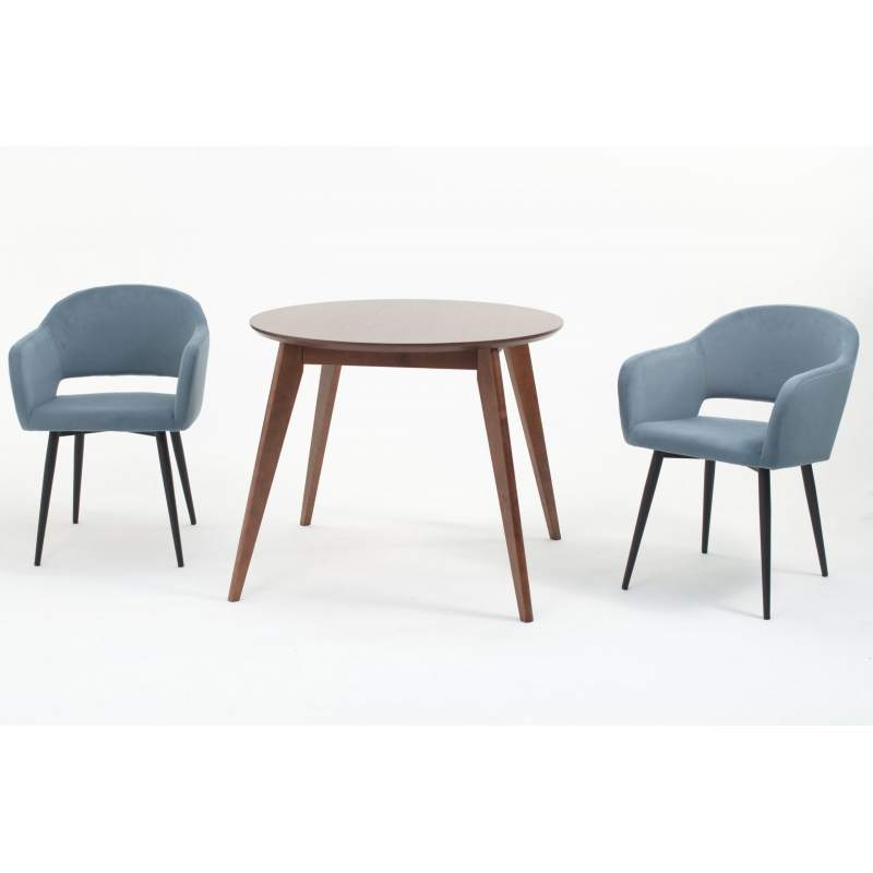 Стол Сканди К 90 орех с креслами Пичч велюр синий