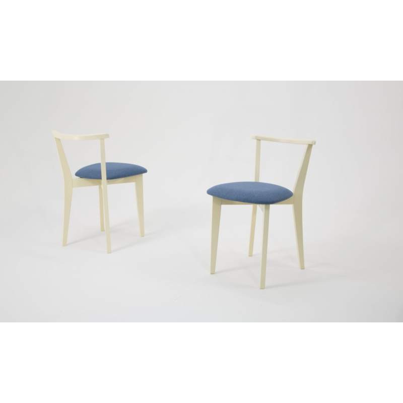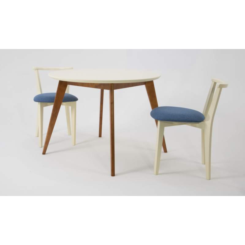 Стол Сканди К 90 орех/слоновая кость со стульями Франк слоновая кость рогожка синий
