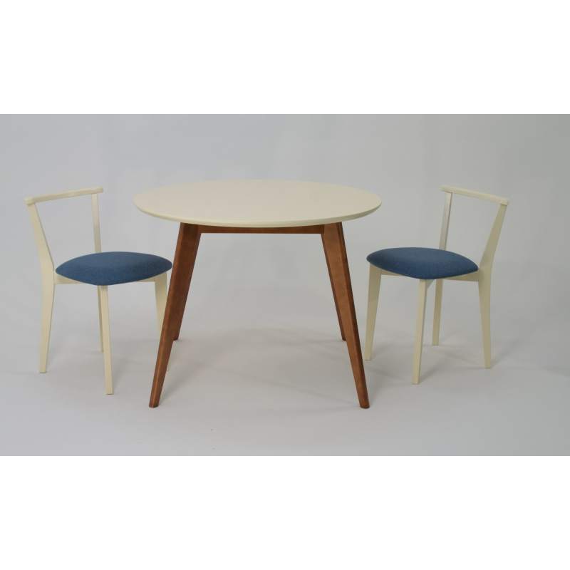 Комплект из деревянного стола Сканди на каркасе из натурального дерева и 2 стула Франк отлично подойдет к интерьеру, выдержанному в скандинавском стиле. Данный комплект станет центральным элементом в гостиной, столовой зоне, на кухне, позволив создать уютное обеденное место, где смогут собираться члены дружной семьи и их гости.У модели круглая форма столешницы. Такое решение исключит риск сколов и обеспечит безопасность, в том числе, детям.Комплект выполнен в красивой комбинации цветов - орех, слоновая кость. Сочетание изысканного дизайна и высокого качества исполнения - главная особенность комплекта.Столешница выполнена из материалов с великолепными эксплуатационными свойствами - МДФ (Материал создается на основе натуральной древесины. Практичен, надежен, имеет однородную гладкую структуру), шпон.Мебель проста в уходе - для поддержания первозданного вида достаточно использовать простую чуть влажную салфетку по мере необходимости.Состав комплекта:- стол F004111WUS- стулья R101709S03