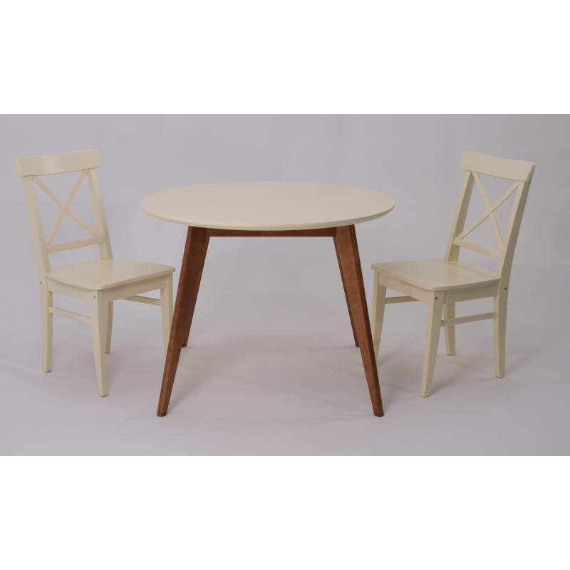 Стол Сканди К 90 орех/слоновая кость со стульями Ингольф слоновая кость