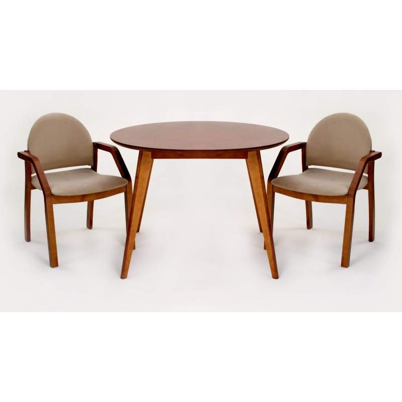 Комплект из деревянного стола Сканди на каркасе из натурального дерева и 2 стула Джуно отлично подойдет к интерьеру, выдержанному в скандинавском стиле. Данный комплект станет центральным элементом в гостиной, столовой зоне, на кухне, позволив создать уютное обеденное место, где смогут собираться члены дружной семьи и их гости.У модели круглая форма столешницы. Такое решение исключит риск сколов и обеспечит безопасность, в том числе, детям.Комплект выполнен в красивом цвете - орех. Сочетание изысканного дизайна и высокого качества исполнения - главная особенность комплекта.Столешница выполнена из материалов с великолепными эксплуатационными свойствами - МДФ (Материал создается на основе натуральной древесины. Практичен, надежен, имеет однородную гладкую структуру), шпон.Мебель проста в уходе - для поддержания первозданного вида достаточно использовать простую чуть влажную салфетку по мере необходимости.Состав комплекта:- стол F004115W00- стулья Z112800W02