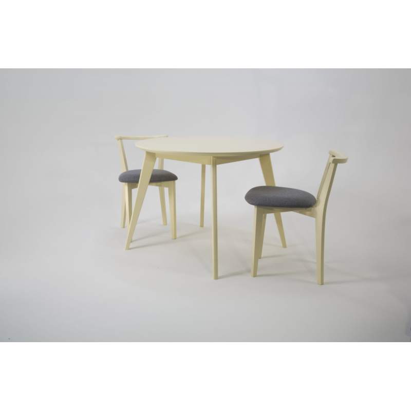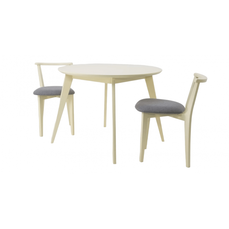 Комплект из деревянного стола Сканди на каркасе из натурального дерева и 2 стула Франк отлично подойдет к интерьеру, выдержанному в скандинавском стиле. Данный комплект станет центральным элементом в гостиной, столовой зоне, на кухне, позволив создать уютное обеденное место, где смогут собираться члены дружной семьи и их гости.У модели круглая форма столешницы. Такое решение исключит риск сколов и обеспечит безопасность, в том числе, детям.Комплект выполнен в красивом цвете - слоновая кость. Сочетание изысканного дизайна и высокого качества исполнения - главная особенность комплекта.Столешница выполнена из материалов с великолепными эксплуатационными свойствами - МДФ (Материал создается на основе натуральной древесины. Практичен, надежен, имеет однородную гладкую структуру), шпон.Мебель проста в уходе - для поддержания первозданного вида достаточно использовать простую чуть влажную салфетку по мере необходимости.Состав комплекта:- стол F004110S00- стулья R101709S01