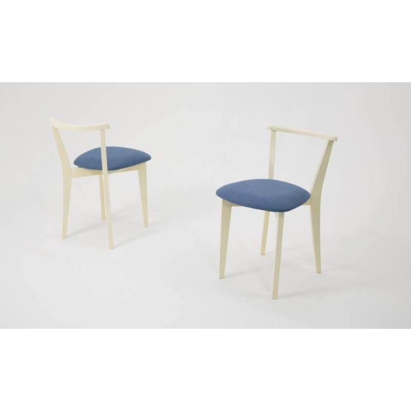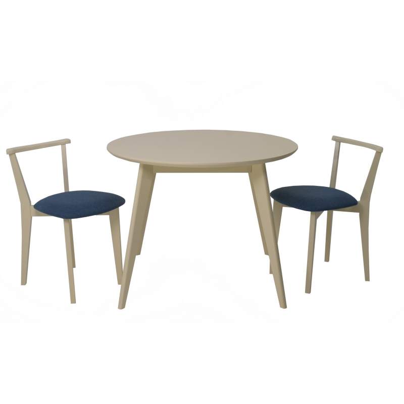 Стол Сканди К 90 слоновая кость со стульями Франк слоновая кость рогожка синий