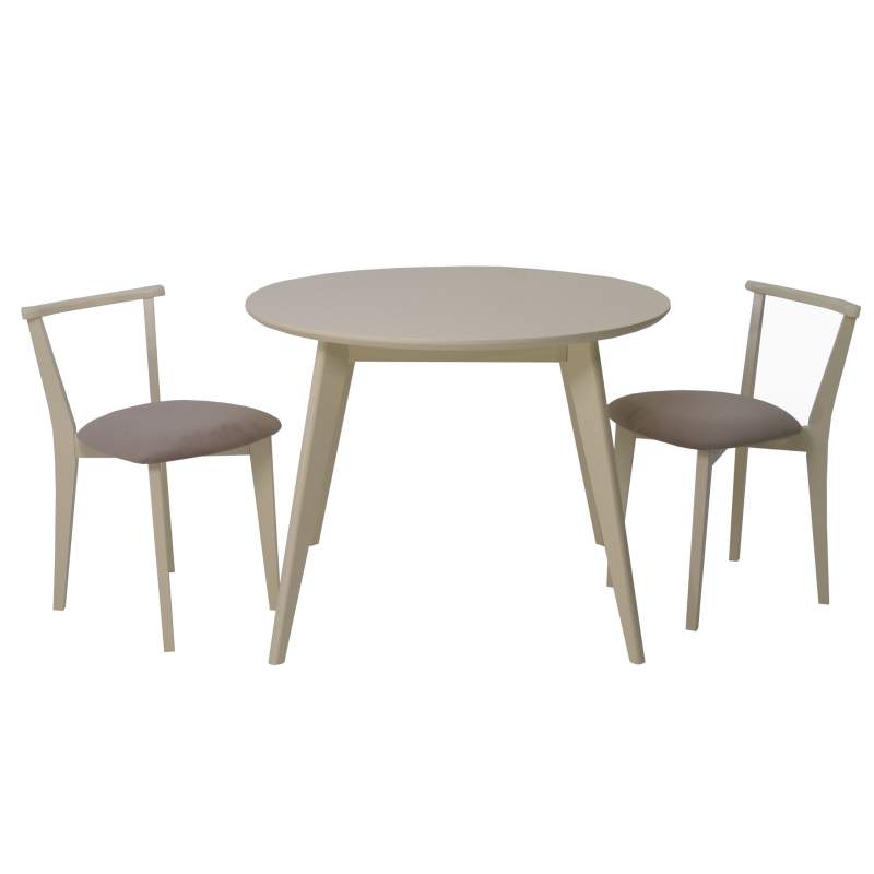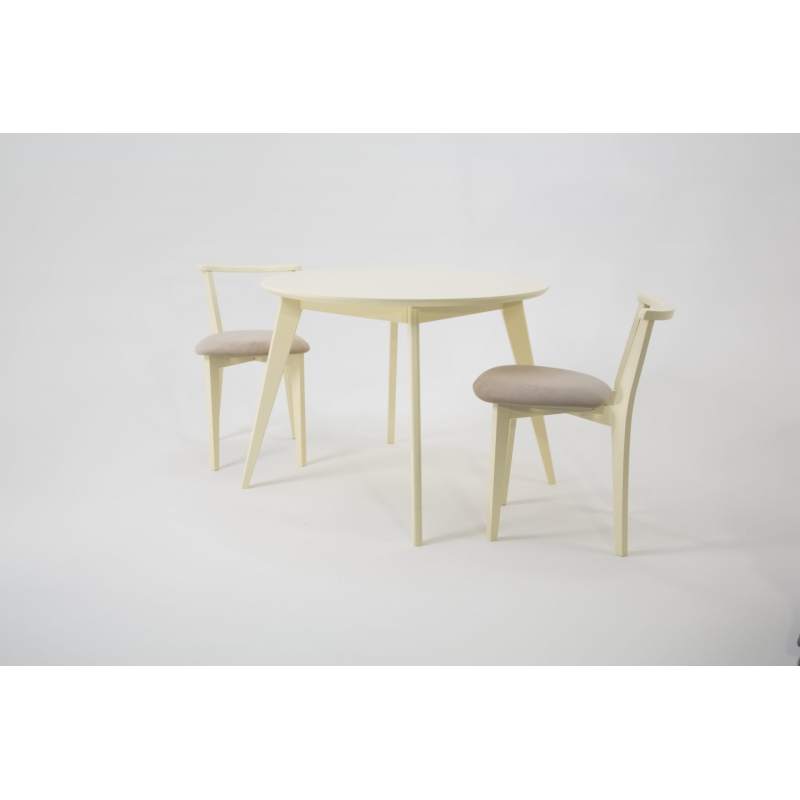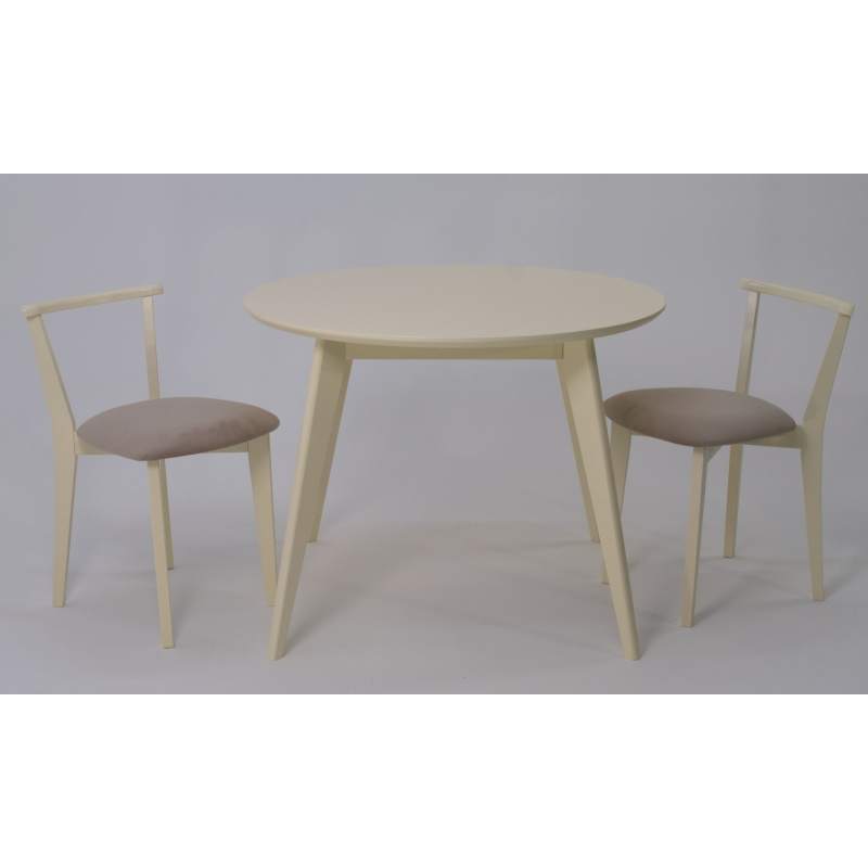 Комплект из деревянного стола Сканди на каркасе из натурального дерева и 2 стула Франк отлично подойдет к интерьеру, выдержанному в скандинавском стиле. Данный комплект станет центральным элементом в гостиной, столовой зоне, на кухне, позволив создать уютное обеденное место, где смогут собираться члены дружной семьи и их гости.У модели круглая форма столешницы. Такое решение исключит риск сколов и обеспечит безопасность, в том числе, детям.Комплект выполнен в красивом цвете - слоновая кость. Сочетание изысканного дизайна и высокого качества исполнения - главная особенность комплекта.Столешница выполнена из материалов с великолепными эксплуатационными свойствами - МДФ (Материал создается на основе натуральной древесины. Практичен, надежен, имеет однородную гладкую структуру), шпон.Мебель проста в уходе - для поддержания первозданного вида достаточно использовать простую чуть влажную салфетку по мере необходимости.Состав комплекта:- стол F004110S00- стулья R101709S02