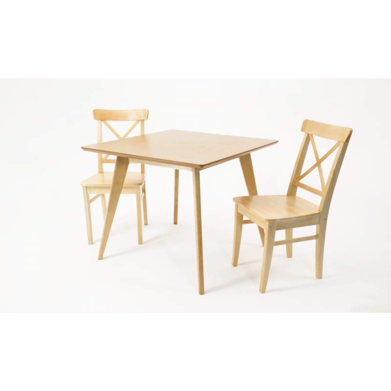 Комплект из деревянного стола Сканди на каркасе из натурального дерева и 2 стула Ингольф отлично подойдет к интерьеру, выдержанному в скандинавском стиле. Данный комплект станет центральным элементом в гостиной, столовой зоне, на кухне, позволив создать уютное обеденное место, где смогут собираться члены дружной семьи и их гости.У модели квадратная форма столешницы, со скруглением углов. Такое решение исключит риск сколов и обеспечит безопасность, в том числе, детям.Комплект выполнен в красивой комбинации цветов - орех, слоновая кость. Сочетание изысканного дизайна и высокого качества исполнения - главная особенность комплекта.Столешница выполнена из материалов с великолепными эксплуатационными свойствами - МДФ (Материал создается на основе натуральной древесины. Практичен, надежен, имеет однородную гладкую структуру), шпон.Мебель проста в уходе - для поддержания первозданного вида достаточно использовать простую чуть влажную салфетку по мере необходимости.Состав комплекта:- стол F404115N00- стулья R100743N00