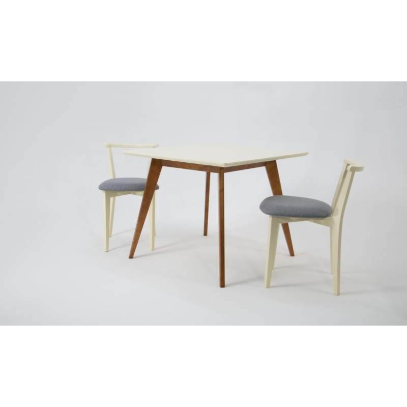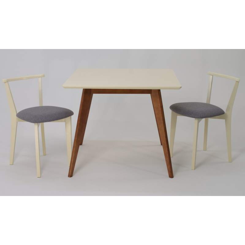Комплект из деревянного стола Сканди на каркасе из натурального дерева и 2 стула Франк отлично подойдет к интерьеру, выдержанному в скандинавском стиле. Данный комплект станет центральным элементом в гостиной, столовой зоне, на кухне, позволив создать уютное обеденное место, где смогут собираться члены дружной семьи и их гости.У модели квадратная форма столешницы, со скруглением углов. Такое решение исключит риск сколов и обеспечит безопасность, в том числе, детям.Комплект выполнен в красивой комбинации цветов - орех, слоновая кость. Сочетание изысканного дизайна и высокого качества исполнения - главная особенность комплекта.Столешница выполнена из материалов с великолепными эксплуатационными свойствами - МДФ (Материал создается на основе натуральной древесины. Практичен, надежен, имеет однородную гладкую структуру), шпон.Мебель проста в уходе - для поддержания первозданного вида достаточно использовать простую чуть влажную салфетку по мере необходимости.Состав комплекта:- стол F404110WUS- стулья R101709S01