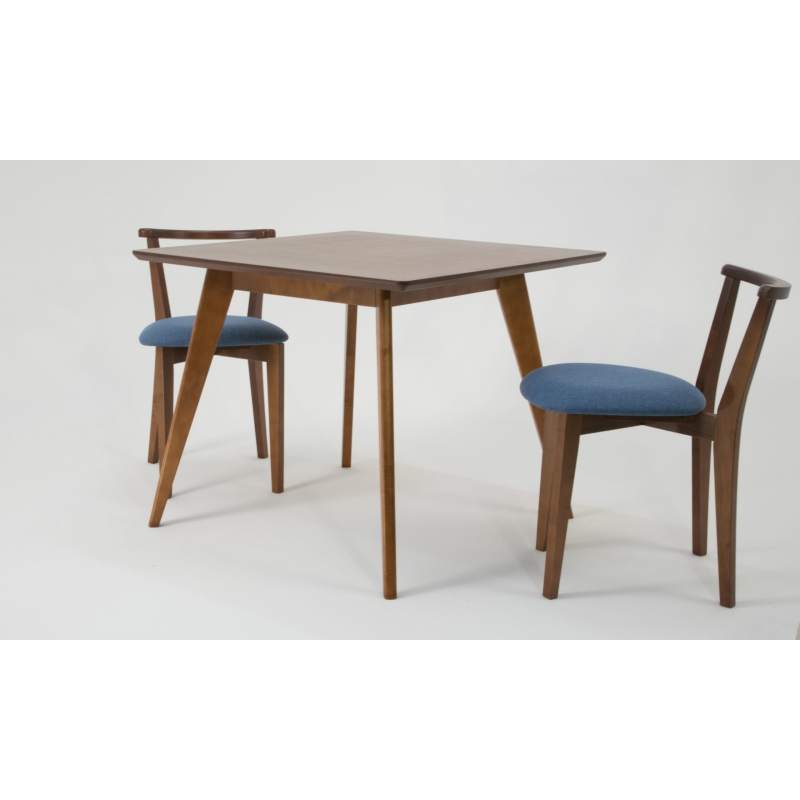 Комплект из деревянного стола Сканди на каркасе из натурального дерева и 2 стула Франк отлично подойдет к интерьеру, выдержанному в скандинавском стиле. Данный комплект станет центральным элементом в гостиной, столовой зоне, на кухне, позволив создать уютное обеденное место, где смогут собираться члены дружной семьи и их гости.У модели квадратная форма столешницы, со скруглением углов. Такое решение исключит риск сколов и обеспечит безопасность, в том числе, детям.Комплект выполнен в красивом цвете - орех. Сочетание изысканного дизайна и высокого качества исполнения - главная особенность комплекта.Столешница выполнена из материалов с великолепными эксплуатационными свойствами - МДФ (Материал создается на основе натуральной древесины. Практичен, надежен, имеет однородную гладкую структуру), шпон.Мебель проста в уходе - для поддержания первозданного вида достаточно использовать простую чуть влажную салфетку по мере необходимости.Состав комплекта:- стол F404114W00- стулья R101709W03
