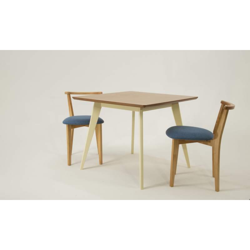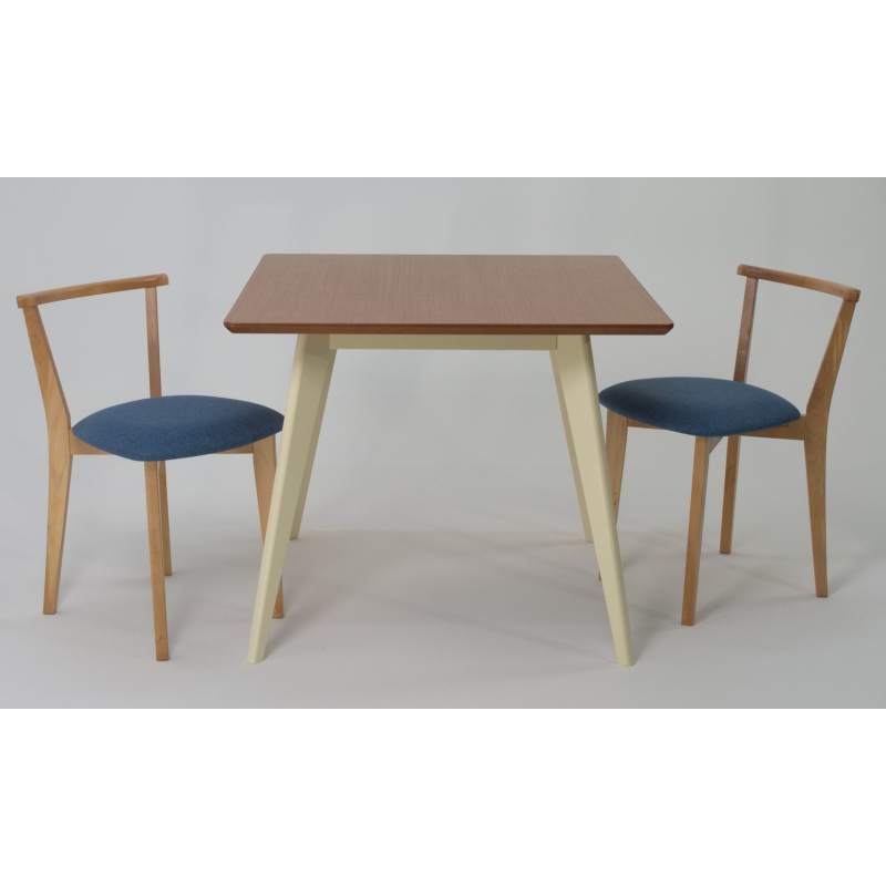 Комплект из деревянного стола Сканди на каркасе из натурального дерева и 2 стула Франк отлично подойдет к интерьеру, выдержанному в скандинавском стиле. Данный комплект станет центральным элементом в гостиной, столовой зоне, на кухне, позволив создать уютное обеденное место, где смогут собираться члены дружной семьи и их гости.У модели квадратная форма столешницы, со скруглением углов. Такое решение исключит риск сколов и обеспечит безопасность, в том числе, детям.Комплект выполнен в красивой комбинации цветов - орех, слоновая кость. Сочетание изысканного дизайна и высокого качества исполнения - главная особенность комплекта.Столешница выполнена из материалов с великолепными эксплуатационными свойствами - МДФ (Материал создается на основе натуральной древесины. Практичен, надежен, имеет однородную гладкую структуру), шпон.Мебель проста в уходе - для поддержания первозданного вида достаточно использовать простую чуть влажную салфетку по мере необходимости.Состав комплекта:- стол F404113SUN- стулья R101708N03