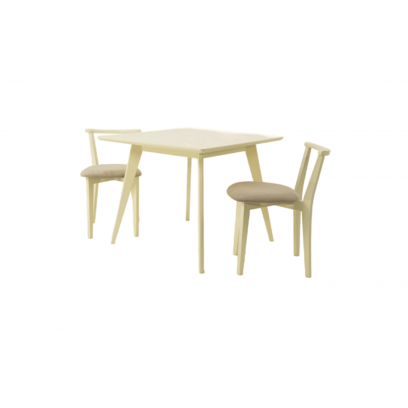 Комплект из деревянного стола Сканди на каркасе из натурального дерева и 2 стула Франк отлично подойдет к интерьеру, выдержанному в скандинавском стиле. Данный комплект станет центральным элементом в гостиной, столовой зоне, на кухне, позволив создать уютное обеденное место, где смогут собираться члены дружной семьи и их гости.У модели квадратная форма столешницы, со скруглением углов. Такое решение исключит риск сколов и обеспечит безопасность, в том числе, детям.Комплект выполнен в красивом цвете - слоновая кость. Сочетание изысканного дизайна и высокого качества исполнения - главная особенность комплекта.Столешница выполнена из материалов с великолепными эксплуатационными свойствами - МДФ (Материал создается на основе натуральной древесины. Практичен, надежен, имеет однородную гладкую структуру), шпон.Мебель проста в уходе - для поддержания первозданного вида достаточно использовать простую чуть влажную салфетку по мере необходимости.Состав комплекта:- стол F404109S00- стулья R101709S02