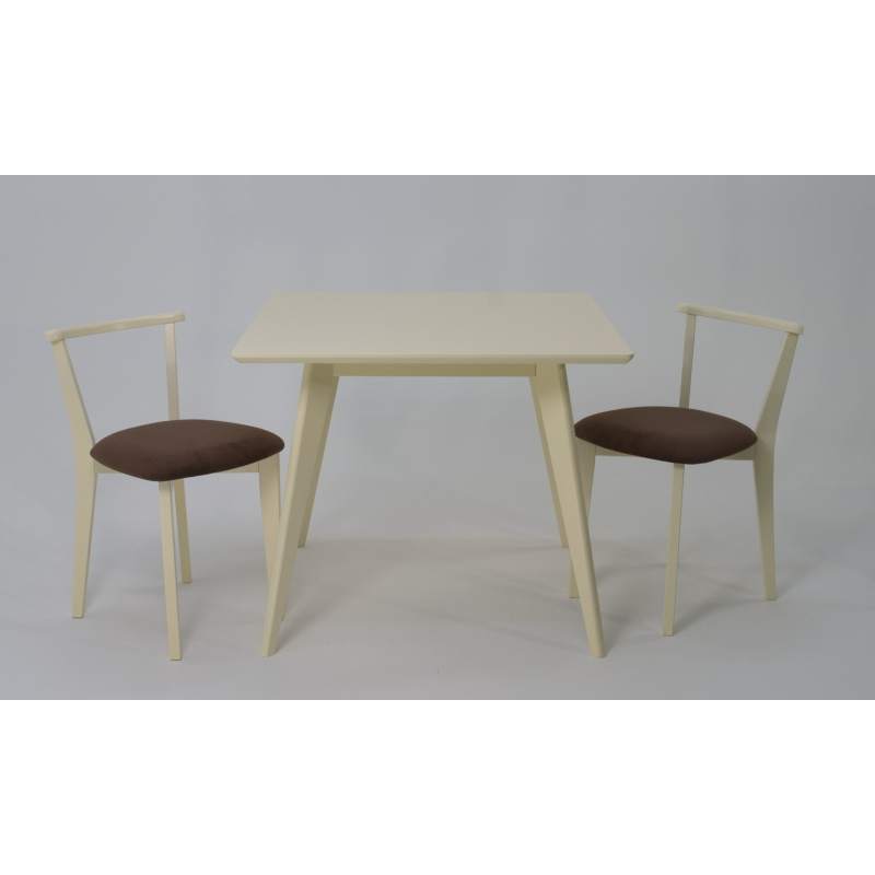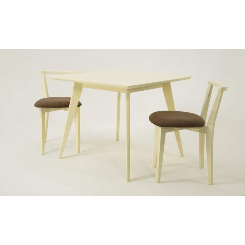 Комплект из деревянного стола Сканди на каркасе из натурального дерева и 2 стула Франк отлично подойдет к интерьеру, выдержанному в скандинавском стиле. Данный комплект станет центральным элементом в гостиной, столовой зоне, на кухне, позволив создать уютное обеденное место, где смогут собираться члены дружной семьи и их гости.У модели квадратная форма столешницы, со скруглением углов. Такое решение исключит риск сколов и обеспечит безопасность, в том числе, детям.Комплект выполнен в красивом цвете - слоновая кость. Сочетание изысканного дизайна и высокого качества исполнения - главная особенность комплекта.Столешница выполнена из материалов с великолепными эксплуатационными свойствами - МДФ (Материал создается на основе натуральной древесины. Практичен, надежен, имеет однородную гладкую структуру), шпон.Мебель проста в уходе - для поддержания первозданного вида достаточно использовать простую чуть влажную салфетку по мере необходимости.Состав комплекта:- стол F404109S00- стулья R101709S04