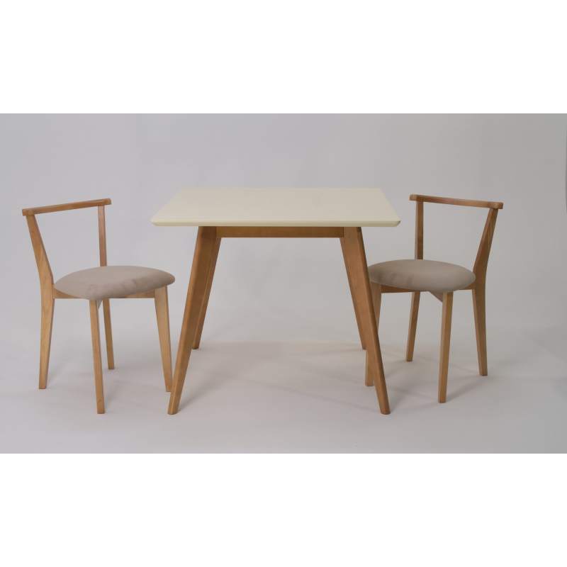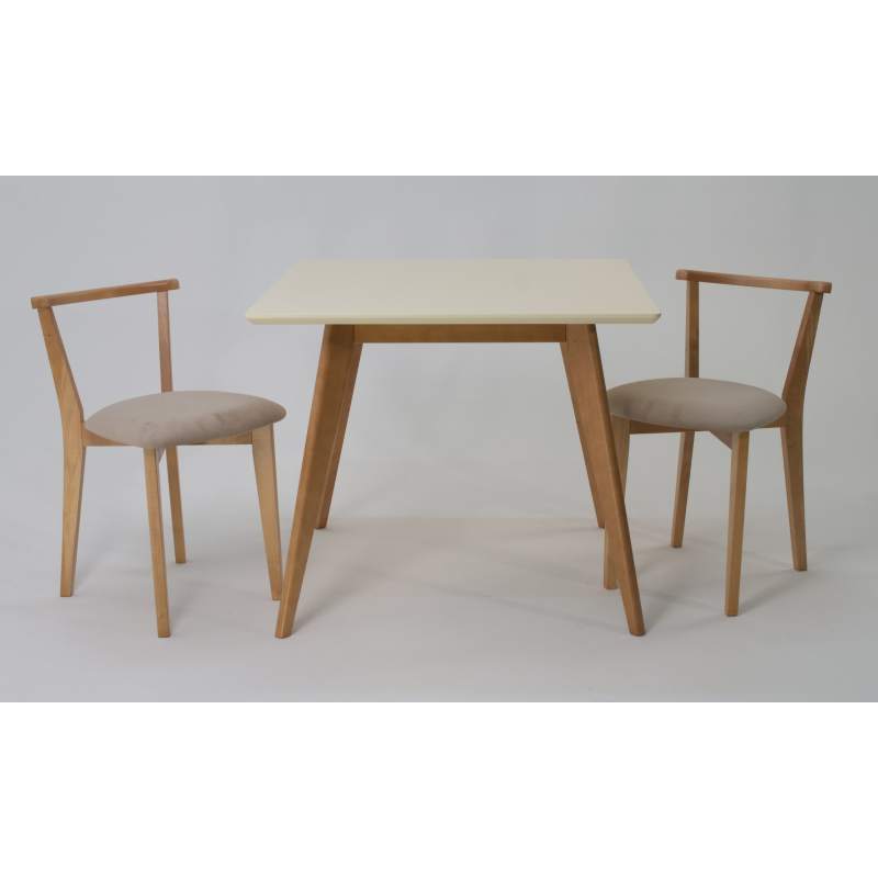 Стол Сканди М 90 натур/слоновая кость со стульями Франк натур велюр бежевый