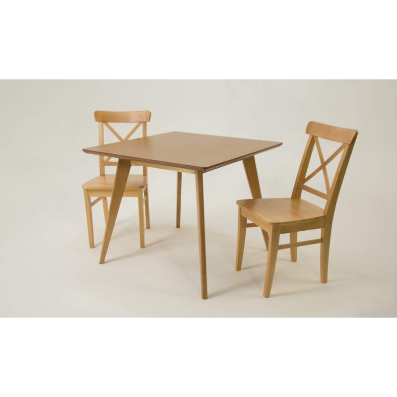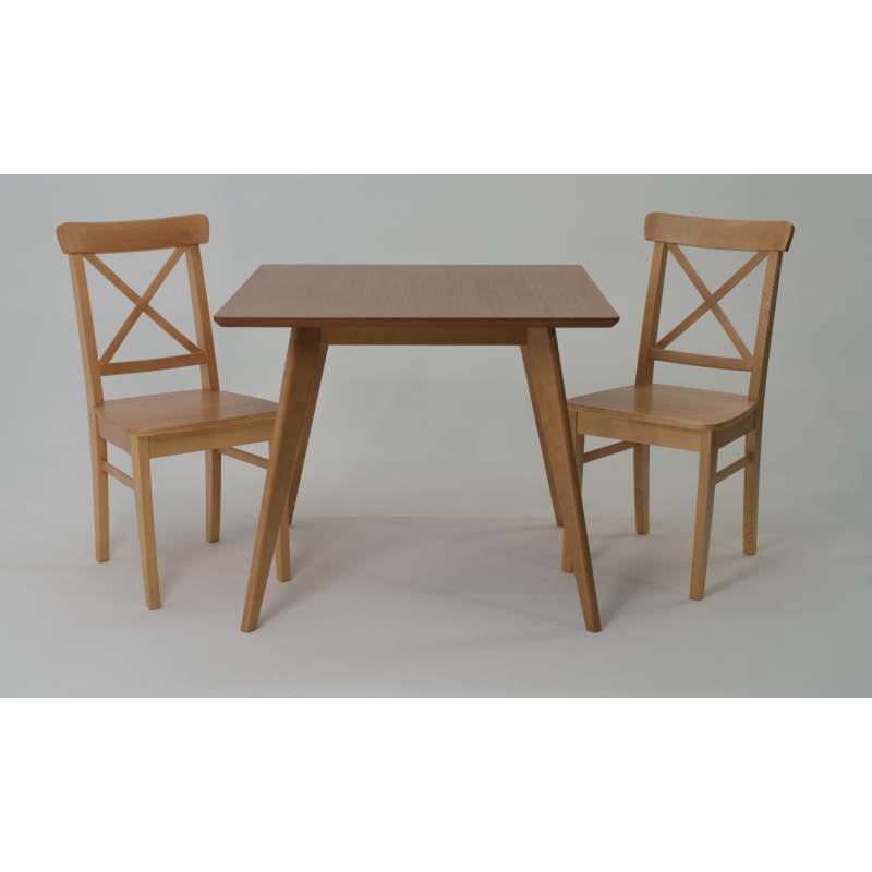 Комплект из деревянного стола Сканди на каркасе из натурального дерева и 2 стула Ингольф отлично подойдет к интерьеру, выдержанному в скандинавском стиле. Данный комплект станет центральным элементом в гостиной, столовой зоне, на кухне, позволив создать уютное обеденное место, где смогут собираться члены дружной семьи и их гости.У модели квадратная форма столешницы, со скруглением углов. Такое решение исключит риск сколов и обеспечит безопасность, в том числе, детям.Комплект выполнен в красивой комбинации цветов - орех, слоновая кость. Сочетание изысканного дизайна и высокого качества исполнения - главная особенность комплекта.Столешница выполнена из материалов с великолепными эксплуатационными свойствами - МДФ (Материал создается на основе натуральной древесины. Практичен, надежен, имеет однородную гладкую структуру), шпон.Мебель проста в уходе - для поддержания первозданного вида достаточно использовать простую чуть влажную салфетку по мере необходимости.Состав комплекта:- стол F404122N00- стулья R100743N00