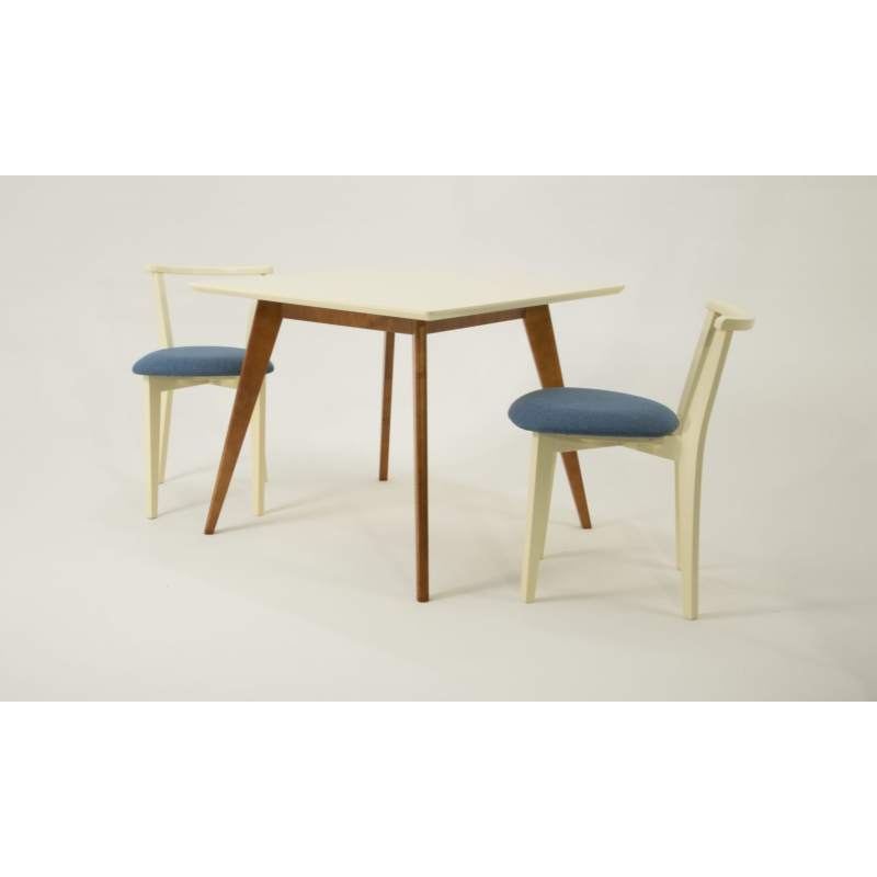 Комплект из деревянного стола Сканди на каркасе из натурального дерева и 2 стула Франк отлично подойдет к интерьеру, выдержанному в скандинавском стиле. Данный комплект станет центральным элементом в гостиной, столовой зоне, на кухне, позволив создать уютное обеденное место, где смогут собираться члены дружной семьи и их гости.У модели квадратная форма столешницы, со скруглением углов. Такое решение исключит риск сколов и обеспечит безопасность, в том числе, детям.Комплект выполнен в красивой комбинации цветов - орех, слоновая кость. Сочетание изысканного дизайна и высокого качества исполнения - главная особенность комплекта.Столешница выполнена из материалов с великолепными эксплуатационными свойствами - МДФ (Материал создается на основе натуральной древесины. Практичен, надежен, имеет однородную гладкую структуру), шпон.Мебель проста в уходе - для поддержания первозданного вида достаточно использовать простую чуть влажную салфетку по мере необходимости.Состав комплекта:- стол F404119WUS- стулья R101709S03