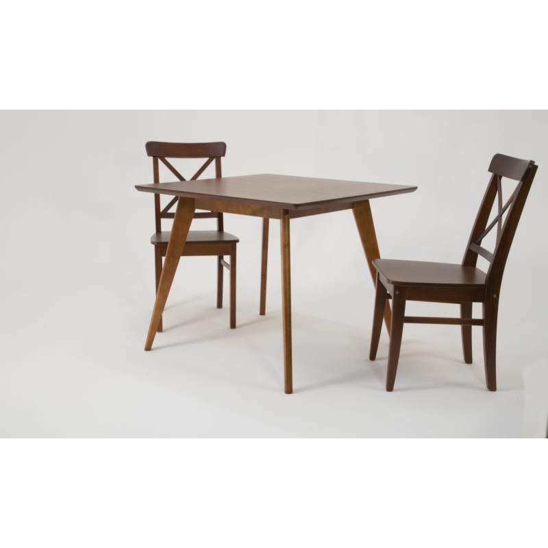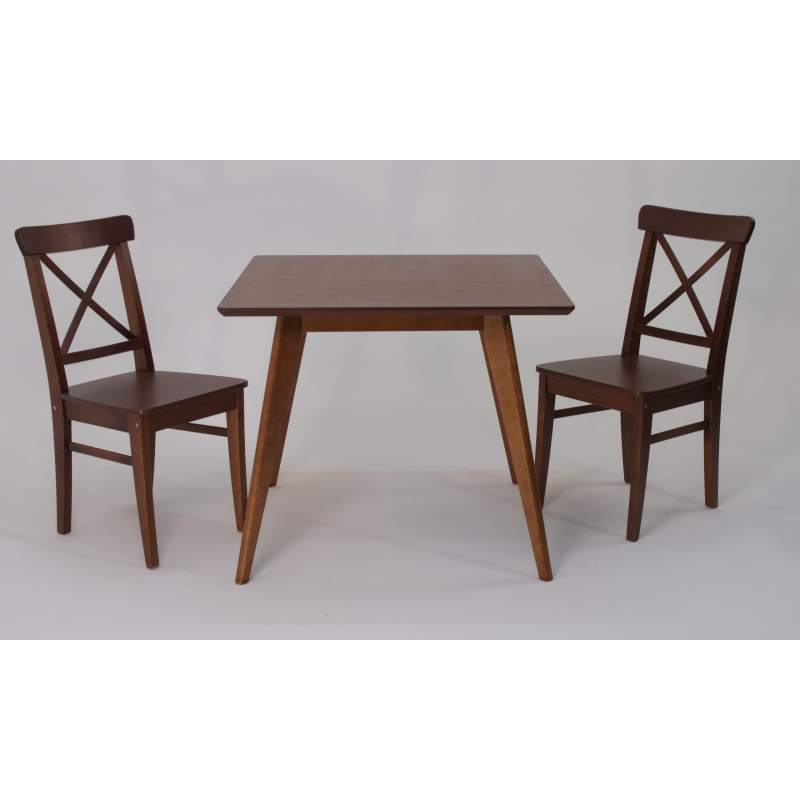 Комплект из деревянного стола Сканди на каркасе из натурального дерева и 2 стула Ингольф отлично подойдет к интерьеру, выдержанному в скандинавском стиле. Данный комплект станет центральным элементом в гостиной, столовой зоне, на кухне, позволив создать уютное обеденное место, где смогут собираться члены дружной семьи и их гости.У модели квадратная форма столешницы, со скруглением углов. Такое решение исключит риск сколов и обеспечит безопасность, в том числе, детям.Комплект выполнен в красивой комбинации цветов - орех, слоновая кость. Сочетание изысканного дизайна и высокого качества исполнения - главная особенность комплекта.Столешница выполнена из материалов с великолепными эксплуатационными свойствами - МДФ (Материал создается на основе натуральной древесины. Практичен, надежен, имеет однородную гладкую структуру), шпон.Мебель проста в уходе - для поддержания первозданного вида достаточно использовать простую чуть влажную салфетку по мере необходимости.Состав комплекта:- стол F404121W00- стулья R100742W00