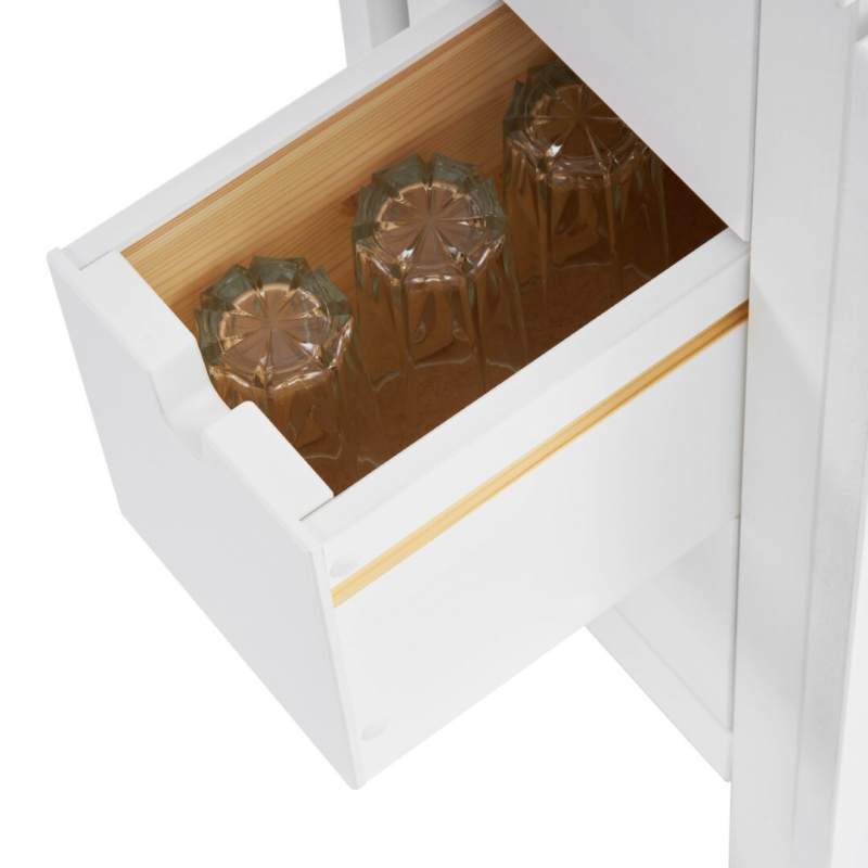 Шесть удобных ящиков под столешницей для хранения столовых приборов, посуды или свечей.