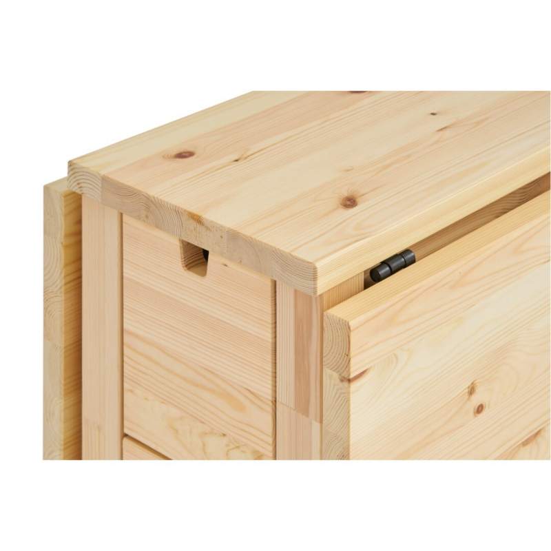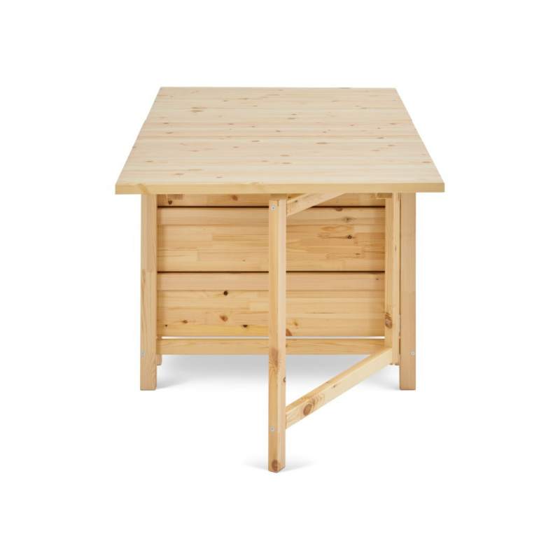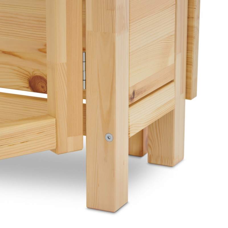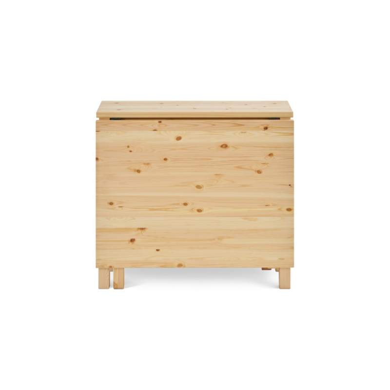 Стол изготовлен из натурального массива сосны. Покрытие выполнено с использованием красителей на водной основе и лака на основе акриловых смол с УФ-отверждением. Такое покрытие обеспечивает долговечность изделия, устойчивость к потертостям и царапинам, а также простоту в уходе — достаточно легкой влажной уборки.