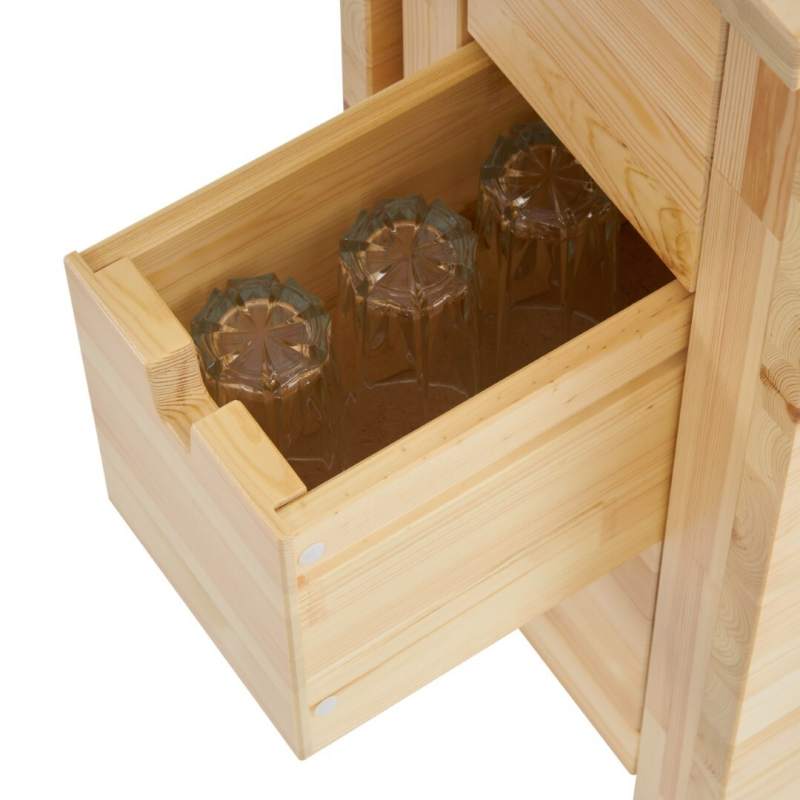 Шесть удобных ящиков под столешницей для хранения столовых приборов, посуды или свечей.