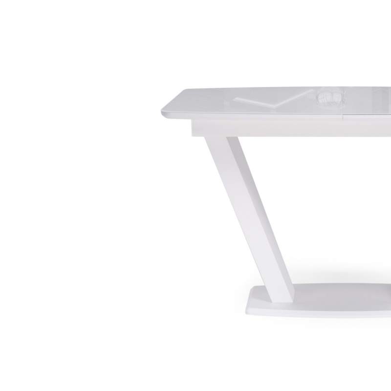 Материал каркаса - МДФ; Материал столешницы - Стекло; Цвет ножек - белый; Цвет столешницы - белый; Ширина - 80; Высота - 75; Длина стола в разложенном виде - 160; Длина - 120;
