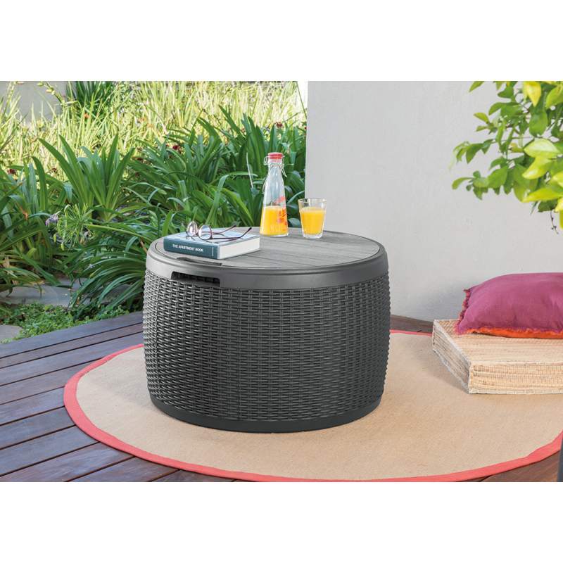 Круглый сундук CIRCA RATTAN 140 л является универсальным и дизайнерским решением в интерьере. Он не только вмещает в себя подручный садовый инвентарь, но и служит в качестве классического садового столика. Стильная модель, вдохновленная ротанговой текстурой, отлично подчеркивает характер окружающего ландшафта. Продукт выполнен из высококачественного материала и устойчивый к вредному воздействию влаги и других атмосферных факторов. Он идеально украшает интерьер террас, балконов и домов. Легко и быстро собирается.