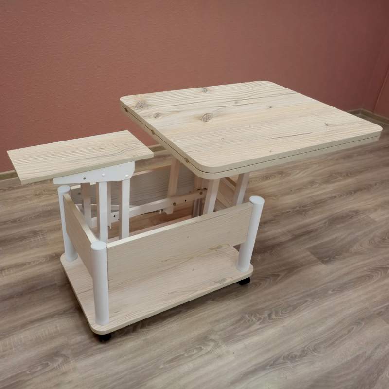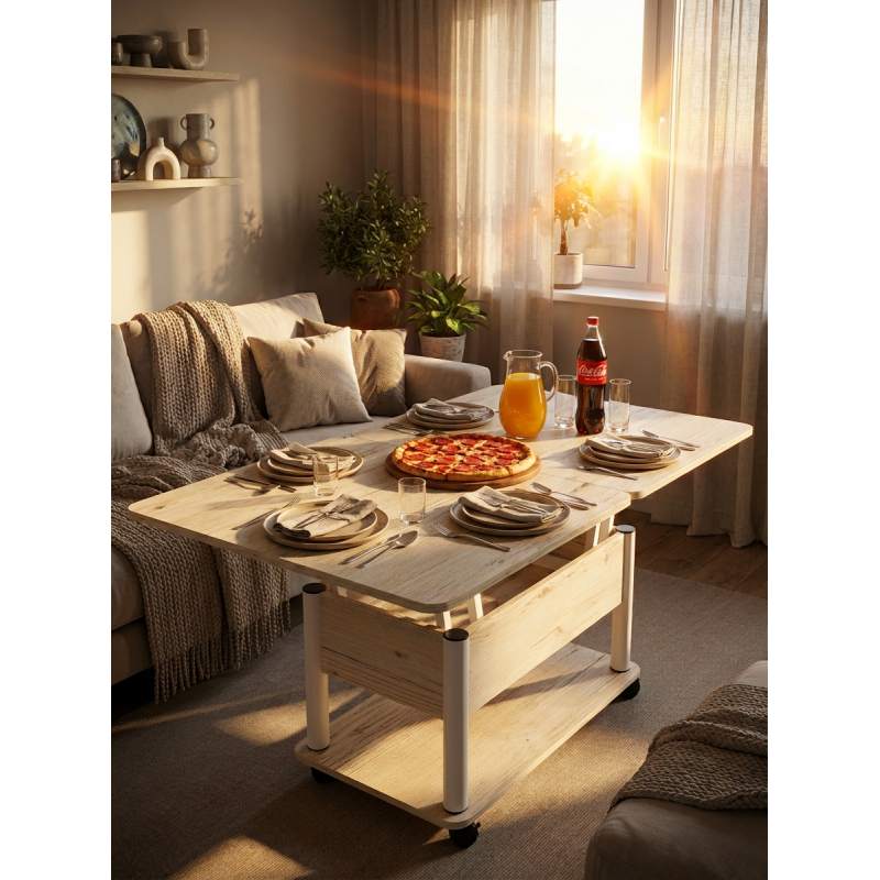 Стол трансформер Джокер — универсальное решение для дома и офиса, где важны практичность и эстетика. Благодаря колёсикам с фиксацией стол легко перемещать и надёжно закреплять на месте. Прочная столешница из ЛДСП (22 мм) с тремя соединительными петлями гарантирует долговечность и устойчивость к нагрузкам. Усиленный механизм трансформации исключает шатание в любом положении. В сложенном виде это компактный журнальный стол, а в разложенном — обеденный, рассчитанный на 8 человек. Универсальный дизайн позволяет использовать стол для семейных ужинов, дружеских встреч или работы, делая его полноценным и функциональным элементом интерьера.