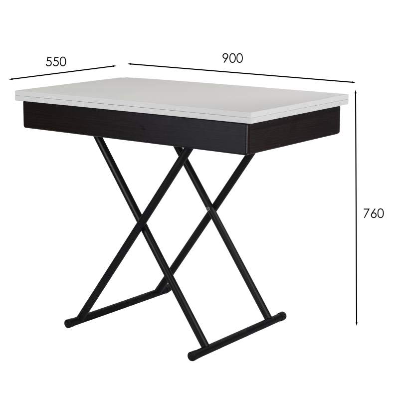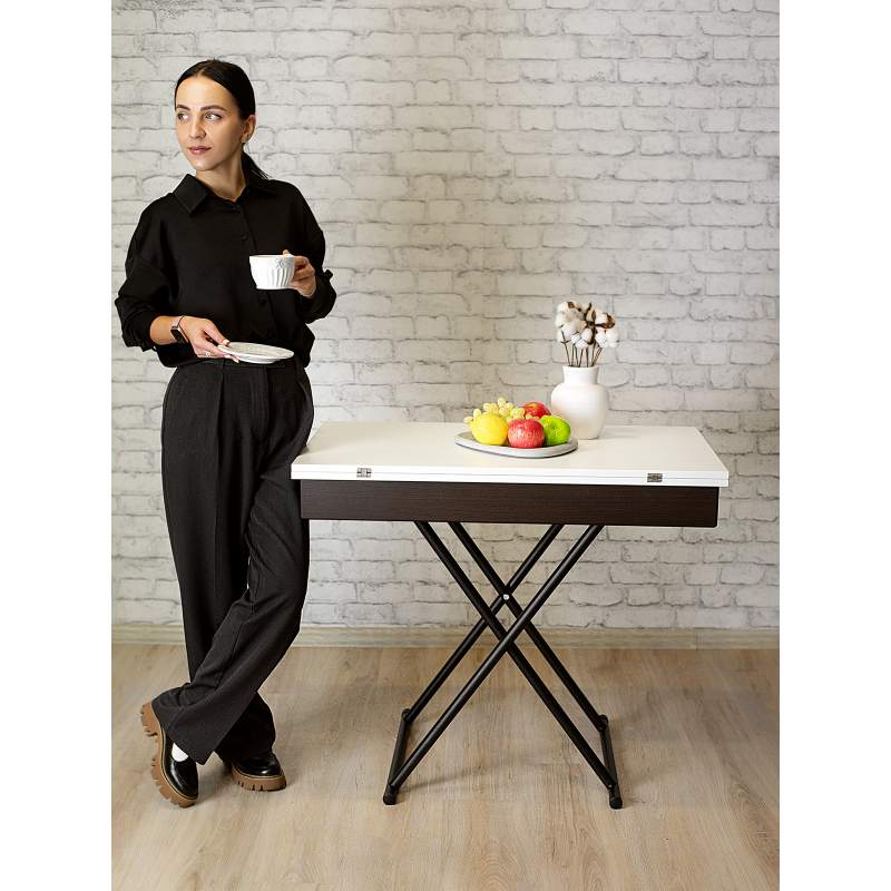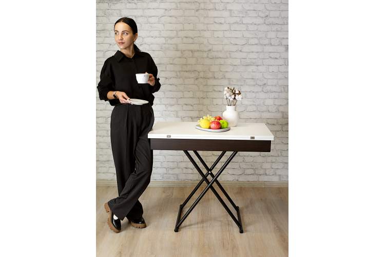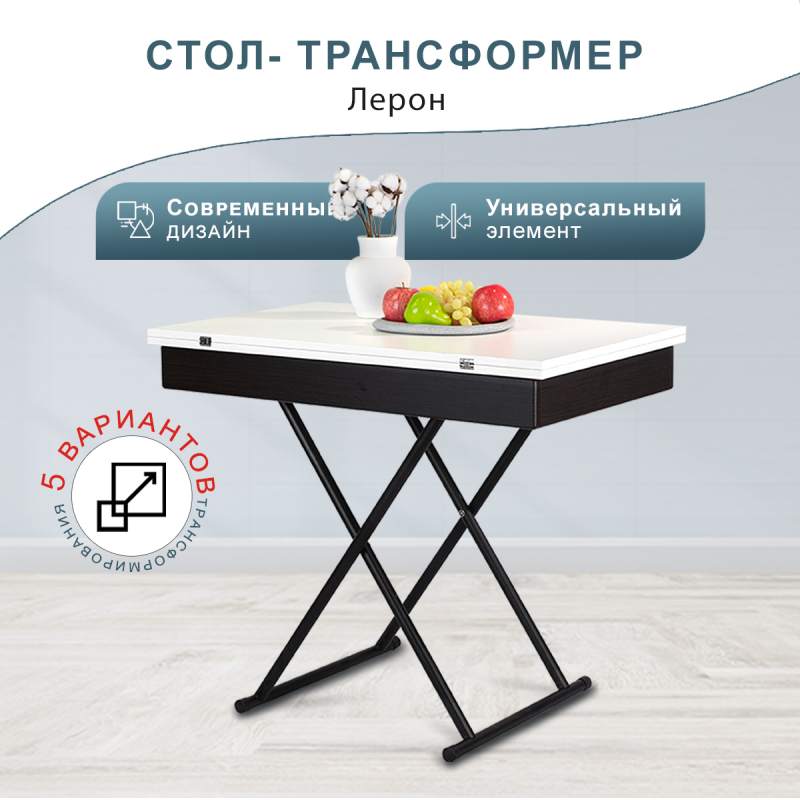 Стол-трансформер Лерон – это инновационное решение для вашего интерьера. Столешница из ЛДСП толщиной 16мм и каркас из металлических трубок диаметром 25мм, обеспечивают прочность и долговечность. Возможность трансформирования позволяет использовать его как обеденный, журнальный, сервировочный или даже как прикроватный столик. По высоте столик имеет пять положений: 400мм, 530мм, 630мм, 700мм, 760мм. Раскладывающаяся столешница — это находка для тех, кто любит принимать гостей или просто хочет иметь больше пространства для творчества и работы. В сложенном виде она имеет размеры 550х900мм, в разложенном 1100х900мм. Лерон позволяет с комфортом разместить до 6 человек, а также оптимизировать пространство и повысить комфорт вашего дома.