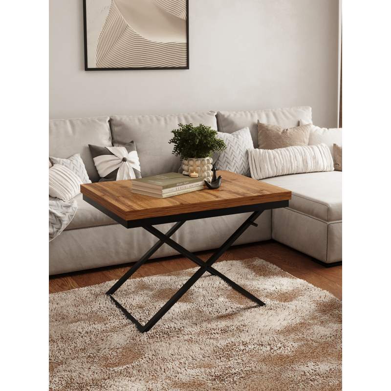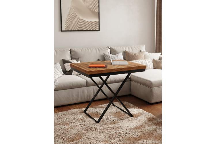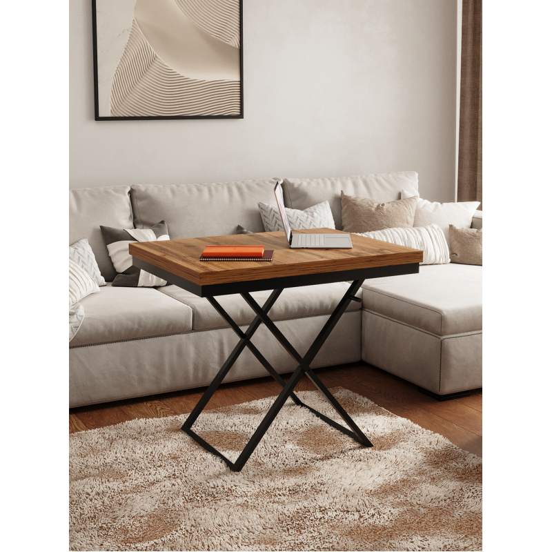Стол-трансформер Манхэттен - практичная мебель для современного интерьера. Он превращается из компактного журнального 900х680 мм в обеденный стол 1360х900 мм. Надежная столешница из ЛДСП толщиной 16 мм в сочетании с прочным металлическими опорами, сечением 30х20 мм, гарантируют надежность и устойчивость. Металлический царговый пояс обеспечивает долговечность конструкции, позволяя выдерживать значительные нагрузки при ежедневном и многократном использовании.