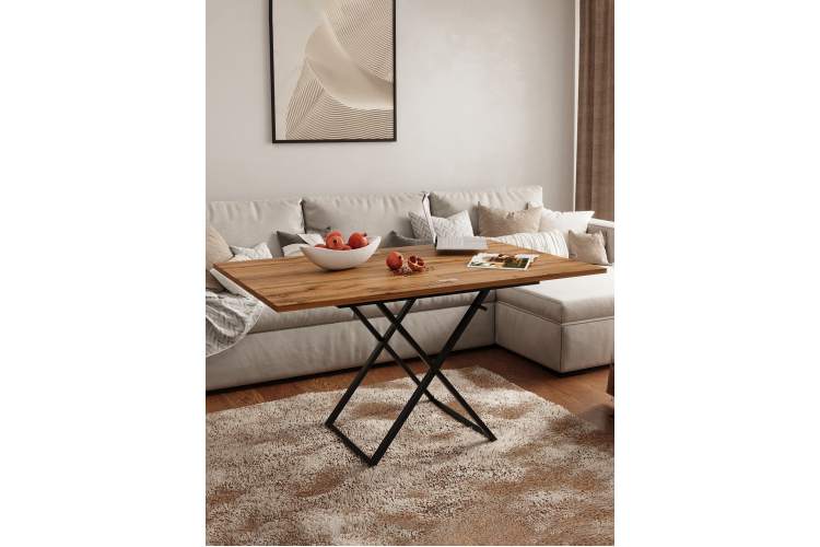 Три положения по высоте (384мм, 608мм и 754мм) позволяют адаптировать стол под разные задачи. Подъемный пружинный механизм представляет собой инновационное решение для трансформации рабочего пространства. Высококачественная пружина обеспечивает плавное и легкое движение столешницы. Конструкция стола снабжена специальным фиксатором, с помощью которого столешница мягко упускается до нижних положений. Универсальный дизайн подходит для гостиной, спальни или дачи, идеален для семейных ужинов и встреч с друзьями.