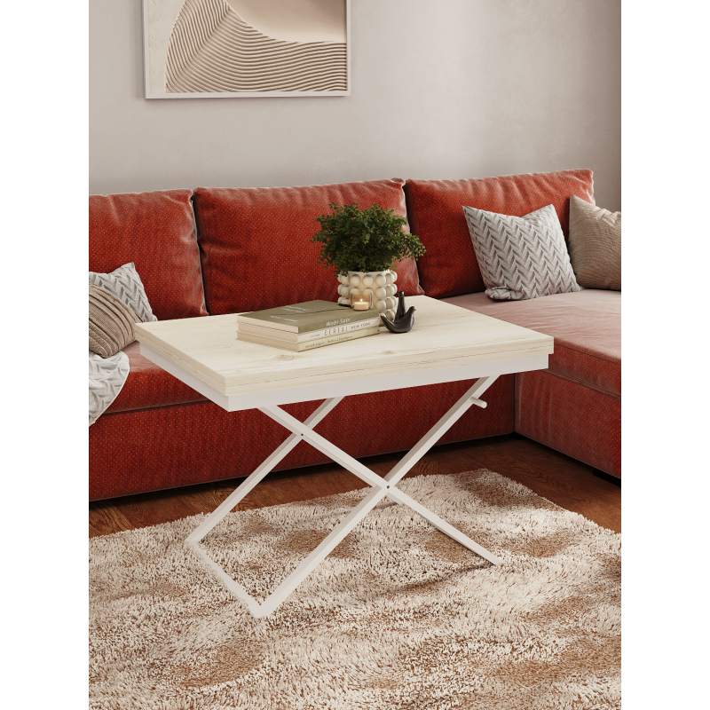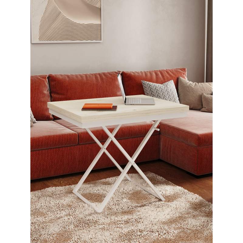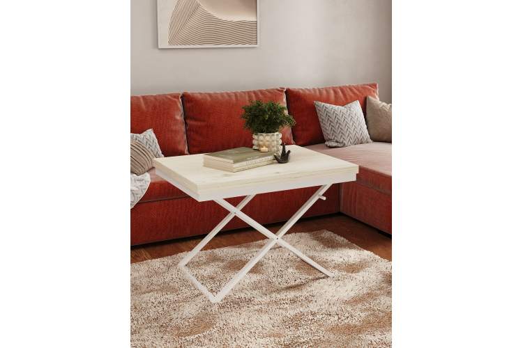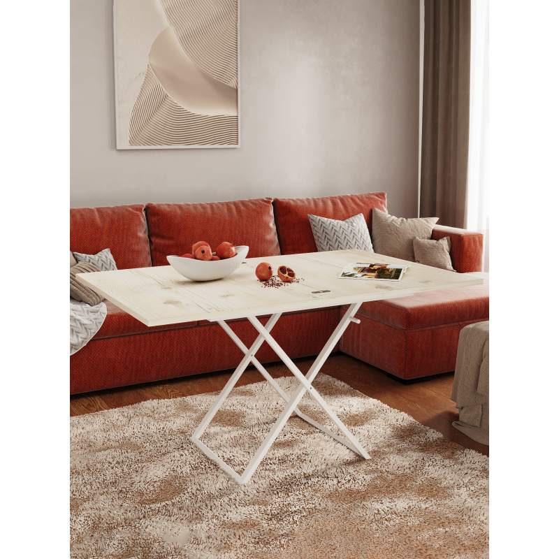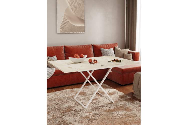 Три положения по высоте (384мм, 608мм и 754мм) позволяют адаптировать стол под разные задачи. Подъемный пружинный механизм представляет собой инновационное решение для трансформации рабочего пространства. Высококачественная пружина обеспечивает плавное и легкое движение столешницы. Конструкция стола снабжена специальным фиксатором, с помощью которого столешница мягко упускается до нижних положений. Универсальный дизайн подходит для гостиной, спальни или дачи, идеален для семейных ужинов и встреч с друзьями.
