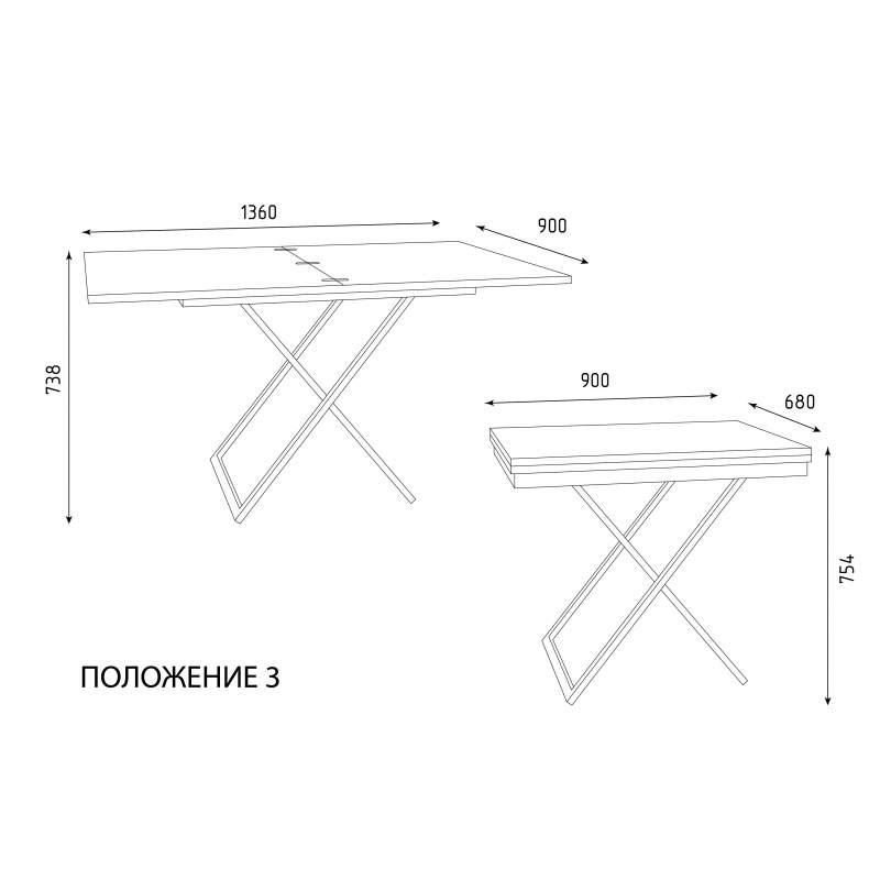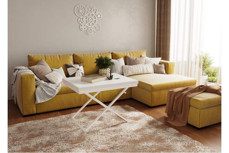 Журнальный стол - трансформер оснащён удобным и надёжным механизмом трансформации и позволяет легко разложить низкий журнальный столик в полноценный обеденный стол на 6-8 человек. Это прекрасное решение вопроса оптимального использования пространства для современного человека.