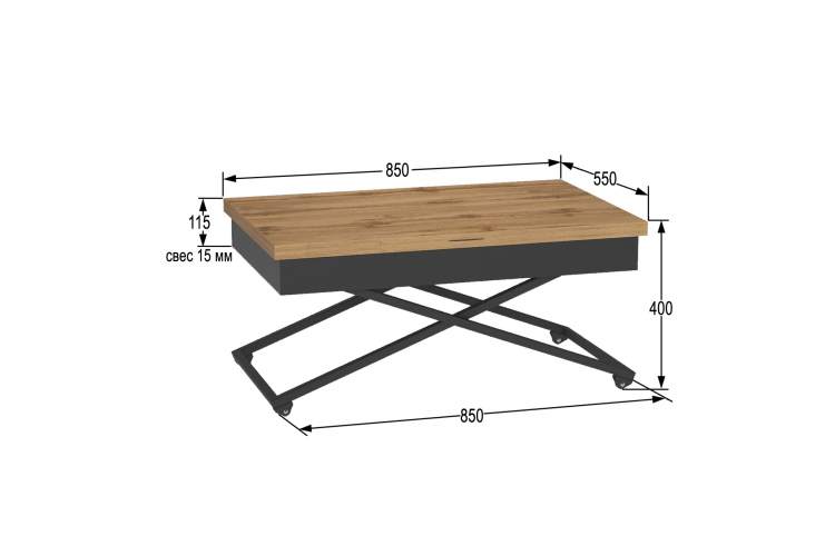 Стол универсальный трансформируемый "АНДРЭ Loft"- функциональный предмет мебели. Его можно поставить как на кухне, так и в гостиной. Подобный стол отлично впишется в интерьер помещения. Стол "АНДРЭ Loft"- грамотное решение для размещения большого количества вещей при экономии пространства в помещении, так как он имеет раскладную конструкцию. Это очень универсальный элемент, который выполняет разные функции. Стол можно использовать и для приёма пищи, и для отдыха за прочтением книги с чашечкой кофе, и даже вместо обычной тумбы. Особенностью такого предмета мебели является его способность трансформироваться: за считанные секунды можно увеличить столешницу или поменять высоту. Вы можете выбирать одно из четырех положений стола. Размеры столешницы в сложенном состоянии 850*550 мм, в разложенном-1100х850 мм. По высоте стол имеет два положения: 400 мм и 725 мм. Ножки стола выполнены из прочного металлического профиля 20*20, столешница- из ЛДСП марки Ламарти 16 мм. Стол на прорезиненных роликовых опорах, что без труда позволит перемещать его в помещении, при этом не царапая и не повреждая напольное покрытие.