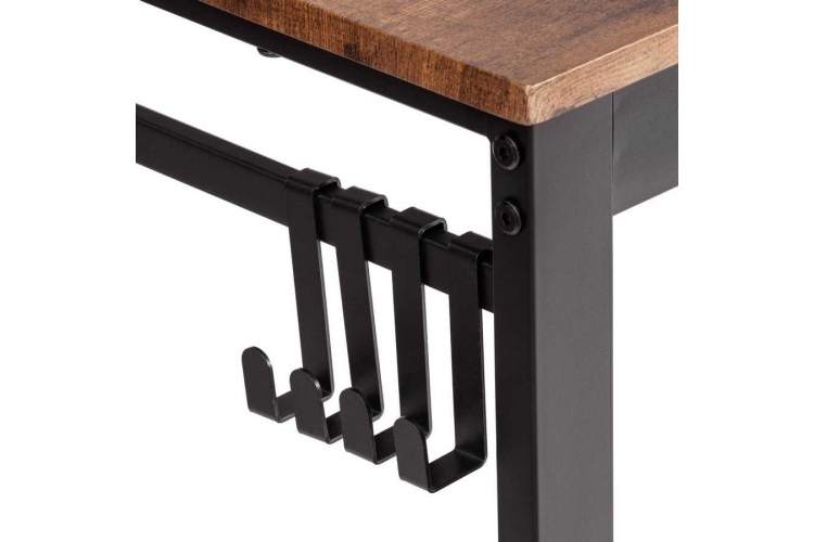 Компьютерный стол в стиле лофт WD-14 удачно сочетает в себе черты практичности, привлекательности и функциональности. Благодаря своему уникальному внешнему виду модель отлично впишется в интерьер рабочего кабинета в городской квартире, загородном доме или офисе. Столешница стола изготовлена из МДФ толщиной 15 мм. Такой материал влагоустойчив, прост в уходе, имеет долгий срок службы. Металлический каркас с порошковой покраской надежен и прочен. Ножки стола регулируются по высоте для устранения неровностей пола. В комплект входит 8 металлических крючков, которые могут использоваться для хранения наушников, рюкзаков, сумок для ноутбуков, проводов и других аксессуаров. Оригинальное сочетание черного каркаса и столешницы в текстуре burnt выглядит элегантно и стильно. Модель может служить отличным решением для организации рабочего места с двумя мониторами или игрового пространства с одним большим экраном. Уникальный компьютерный стол подчеркнет безупречный вкус владельца и придаст интерьеру утонченный и презентабельный вид. Модель WD-14 может быть дополнительно укомплектована стеллажами WS-01 и WS-02 в текстуре burnt. Компьютерный стол очень прост в сборке, инструкция по сборке прилагается.
