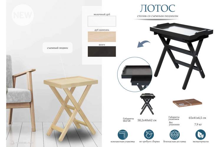 Модель лёгкая, компактная и мобильная, поэтому столик в любой момент можно без труда перенести.