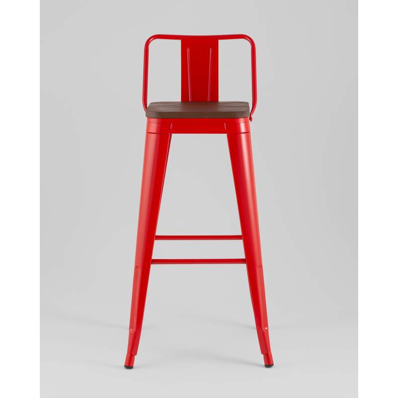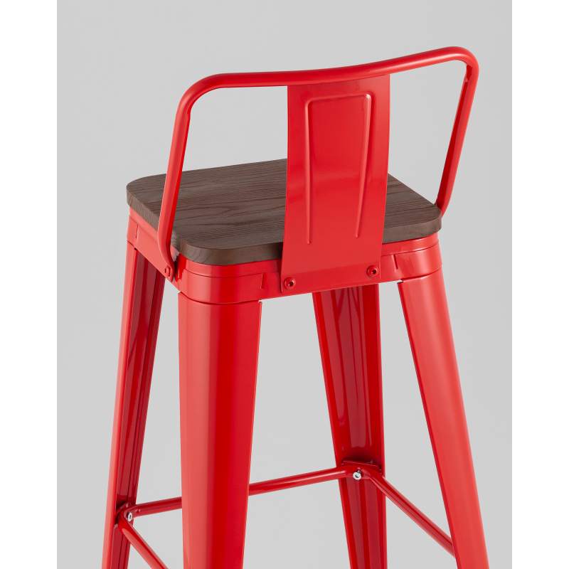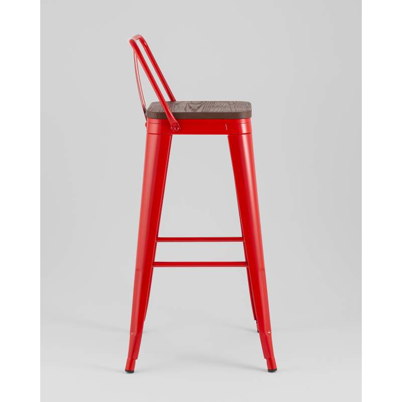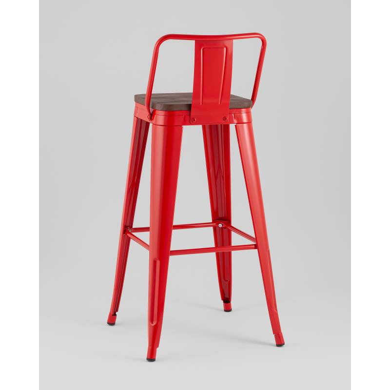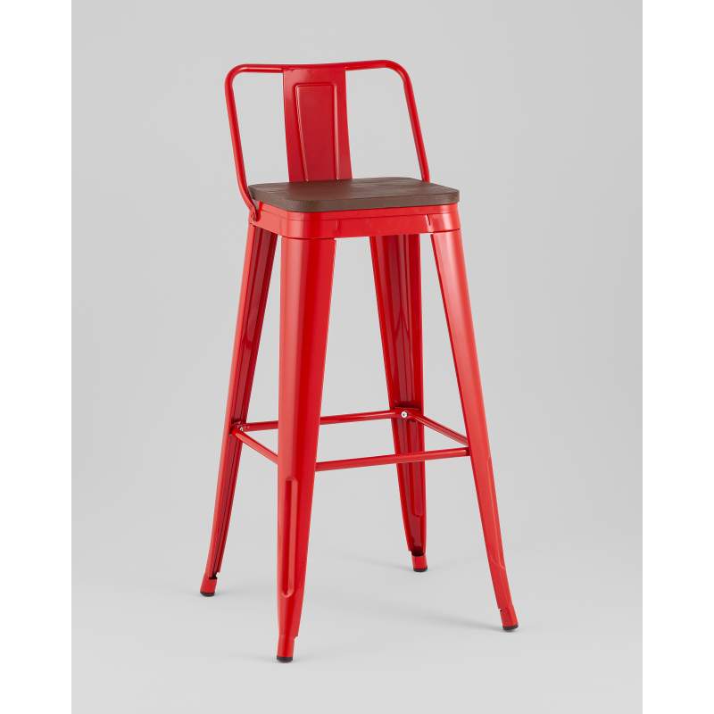 Стул барный TOLIX со спинкой красный глянцевый + темное дерево KD