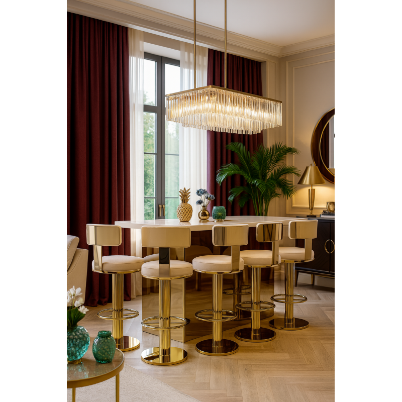 Особенность модели — плавная регулировка высоты, позволяющая адаптировать стул под любую барную стойку или остров. Это особенно удобно, если у вас нестандартная высота мебели или вы хотите использовать стул в разных зонах — от кухни до рабочего уголка.
