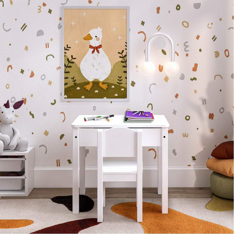 Стульчик изготовлен из гипоаллергенных материалов: массива сосны. Покрытие выполнено с использованием красителей на водной основе и лака на основе акриловых смол с УФ-отверждением. Они не содержат вредных химических веществ, что гарантирует безопасность вашего малыша.
