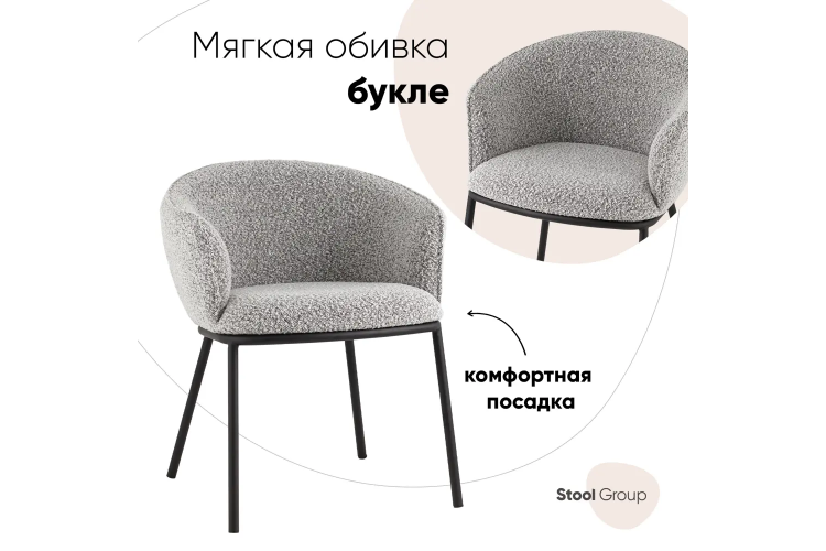 Стул обеденный Дон с подлокотниками серый тканевая обивка, металлические ножки