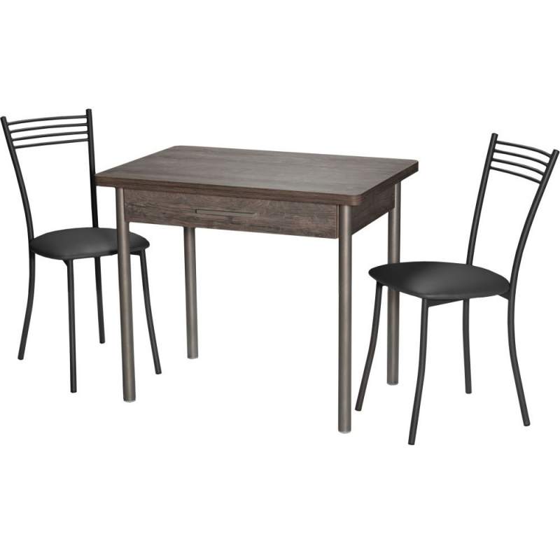 Стул кухонный «Хлоя» ДП2-28 в обивке из кожзама Темно-серый, на металло-каркасе цвета Графит. Материал изготовления каркаса стула — окрашенный, порошковой краской металл. Варианты модели стула предусматривают изготовление из различных тканей и вариантов окраски каркаса.