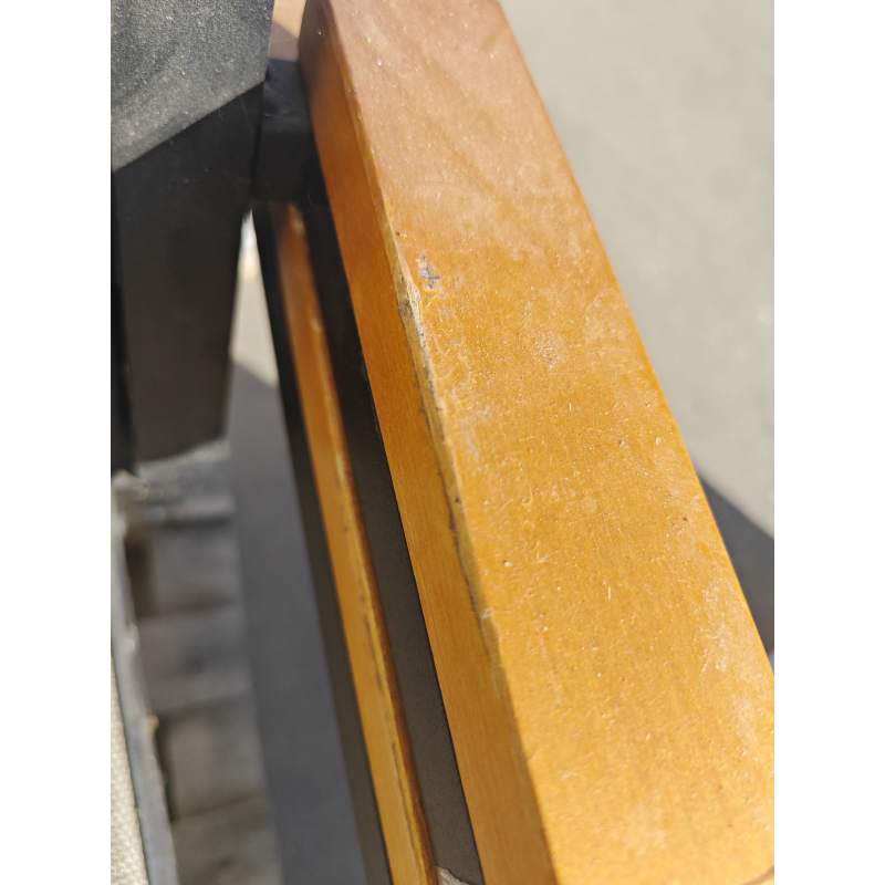 Габариты изделия (ШхДхВ) : 56х57х90Цвет каркаса : черныйМатериал каркаса : стальПокрытие : краска порошковая полимернаяЦвет поверхности : серо-бежевыйДополнительно : сколы на деревянных подлокотниках, ржавчина на ножках