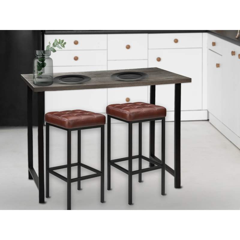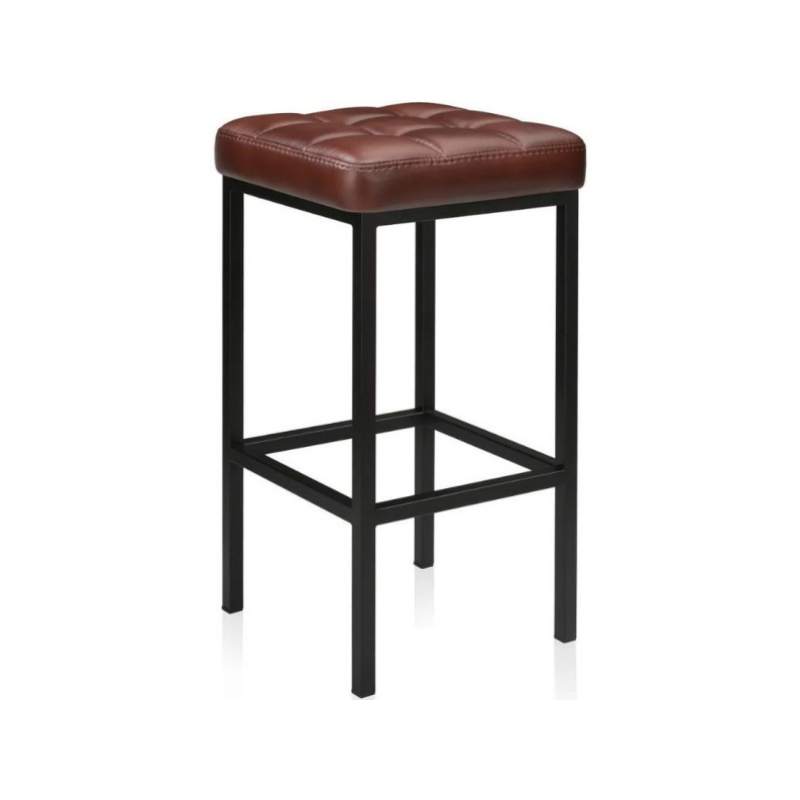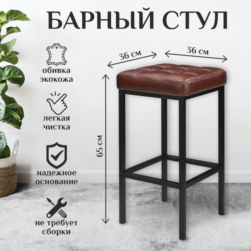 Стул полубарный «Камелот» ДП2-04, на металлическом каркасе цвета черный матовый, с обивкой из коричневого кожазама «Мустанг браун». Материал изготовления каркаса стула — окрашенный металл. Варианты модели стула предусматривают изготовление из различных тканей.
