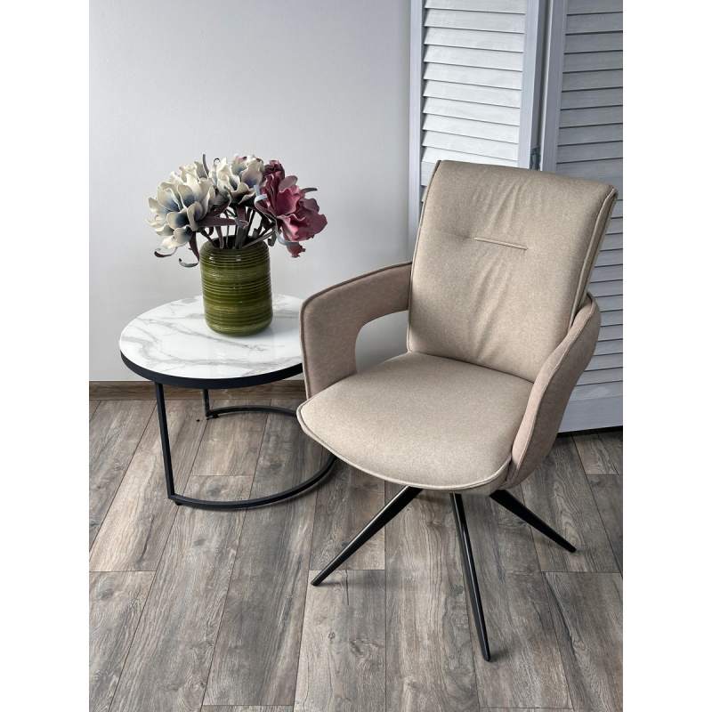 Стул KINNET 360 град. поворот. MOHAIR-110 / CASTEL-15 Бежевый,ткань/ Тем.-серый каркас, ®DISAUR